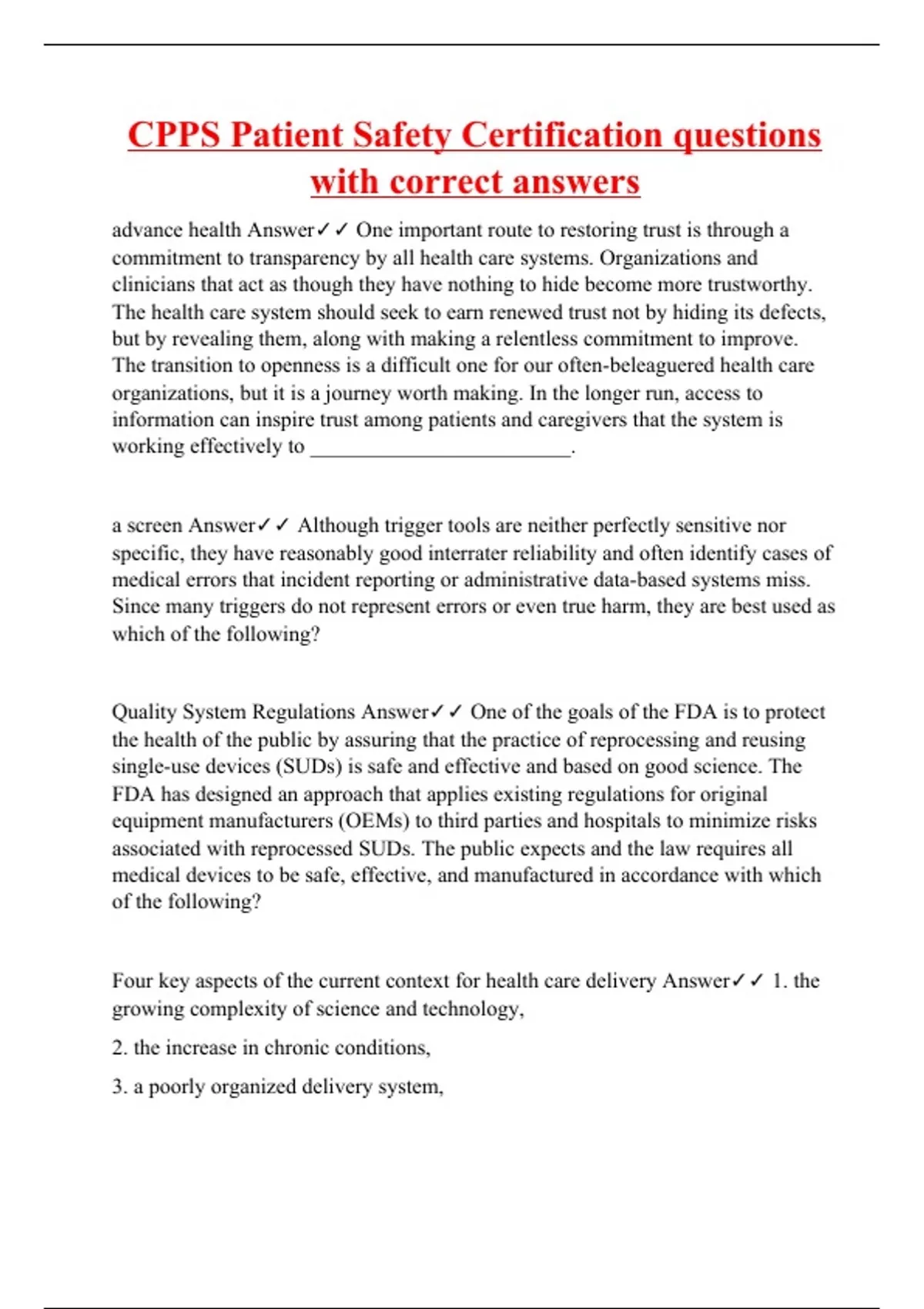 CPPS Patient Safety Certification questions with correct answers