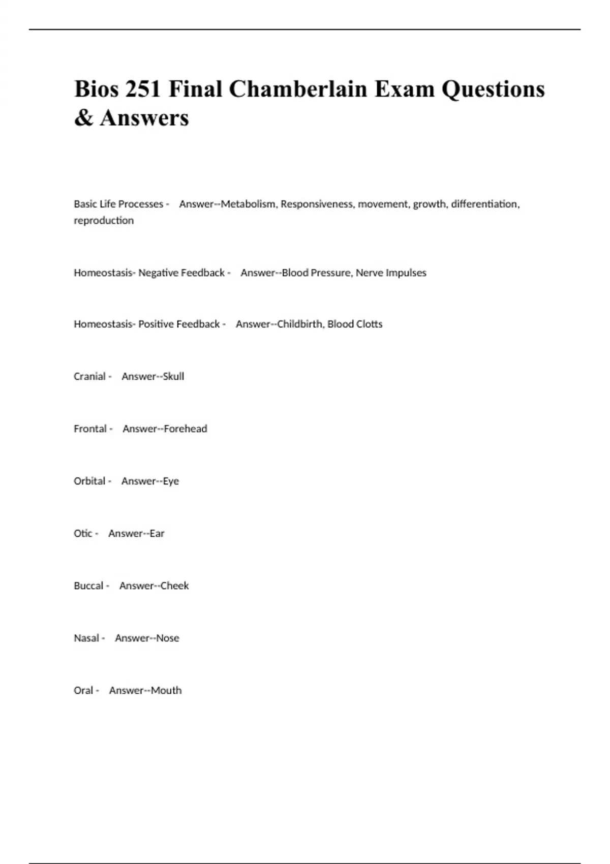Bios 251 Final Chamberlain Exam Questions & Answers
