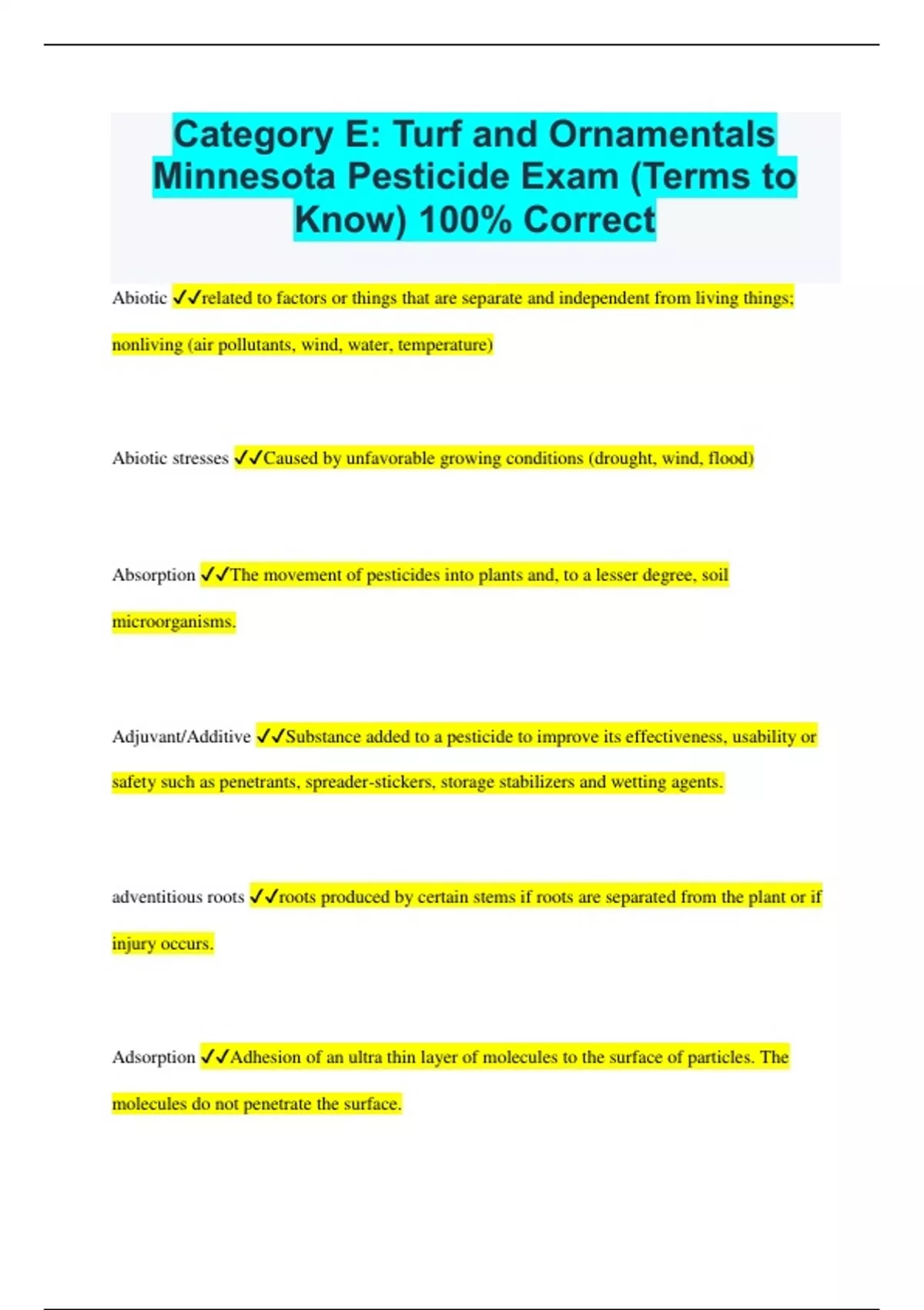 Category E: Turf and Ornamentals Minnesota Pesticide Exam (Terms to Know) 100% Correct