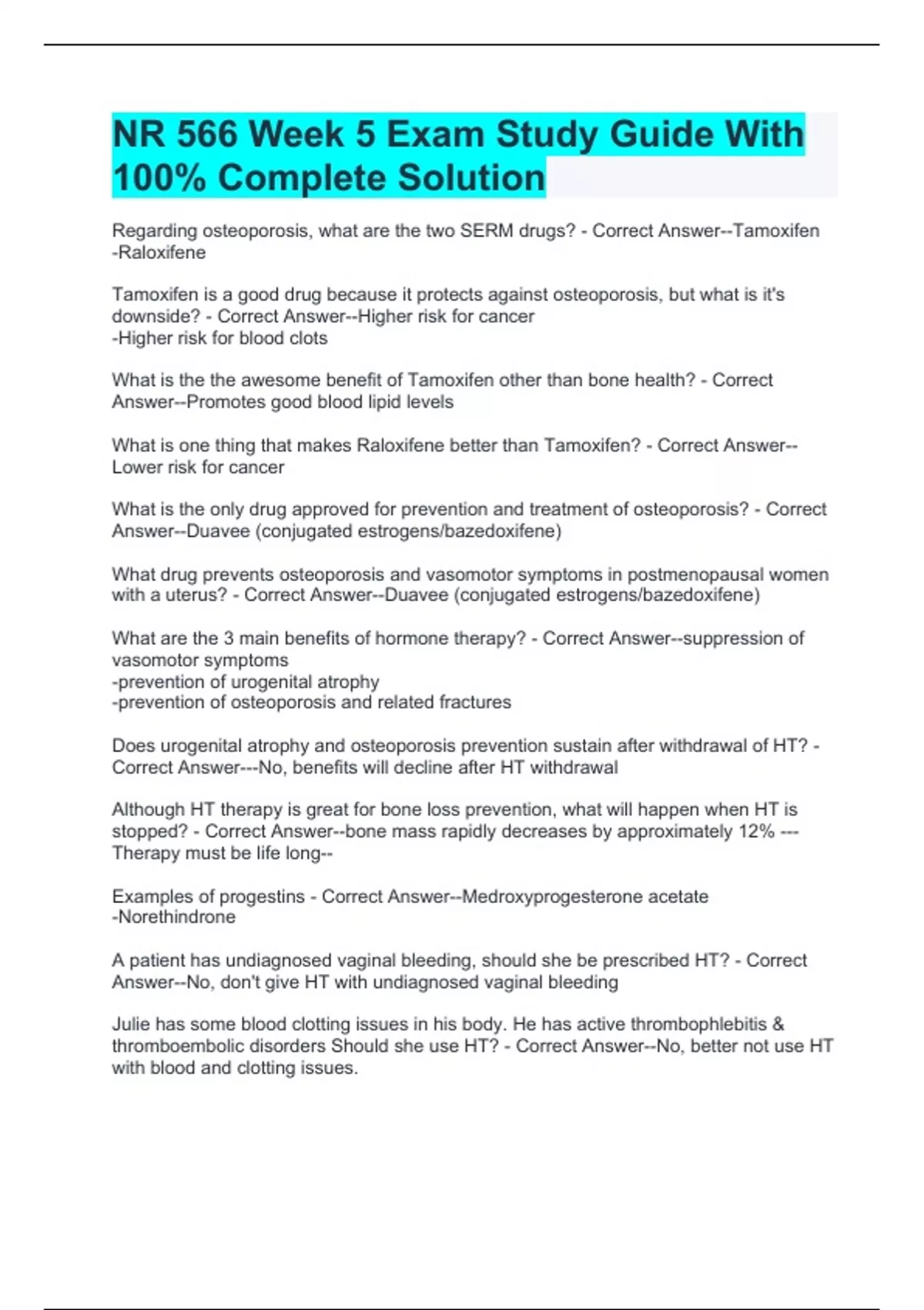 nr 566 week 5 exam study guide with 100 complete