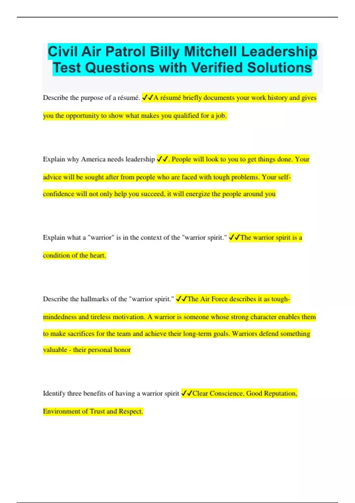 Civil Air Patrol Billy Mitchell Leadership Test Questions with Verified Solutions