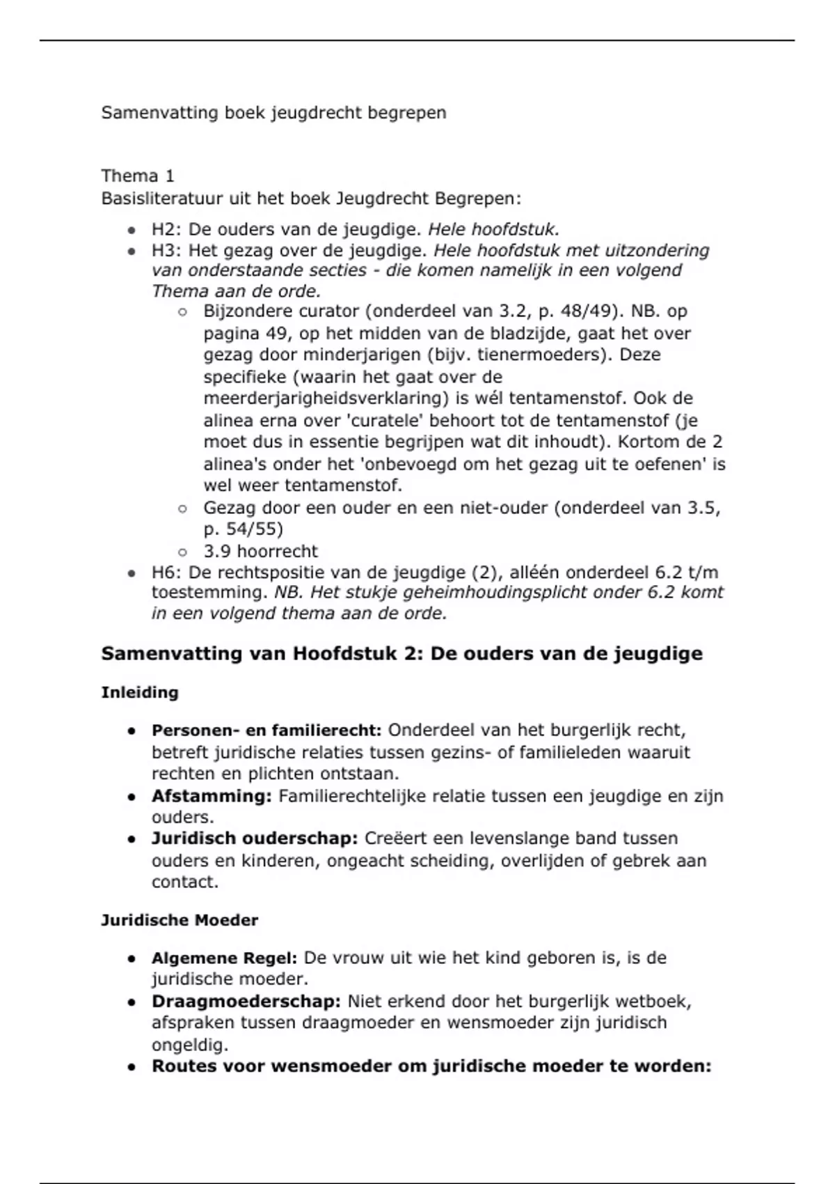 Samenvatting per hoofdstuk van Jeugdrecht begrepen - alle nodige hoofdstukken voor tentamen juridische en ethische aspecten van de opvoeding en ontwikkeling.