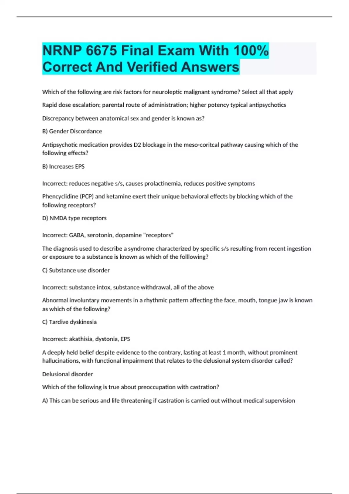 NRNP 6675 Final Exam With 100% Correct And Verified Answers