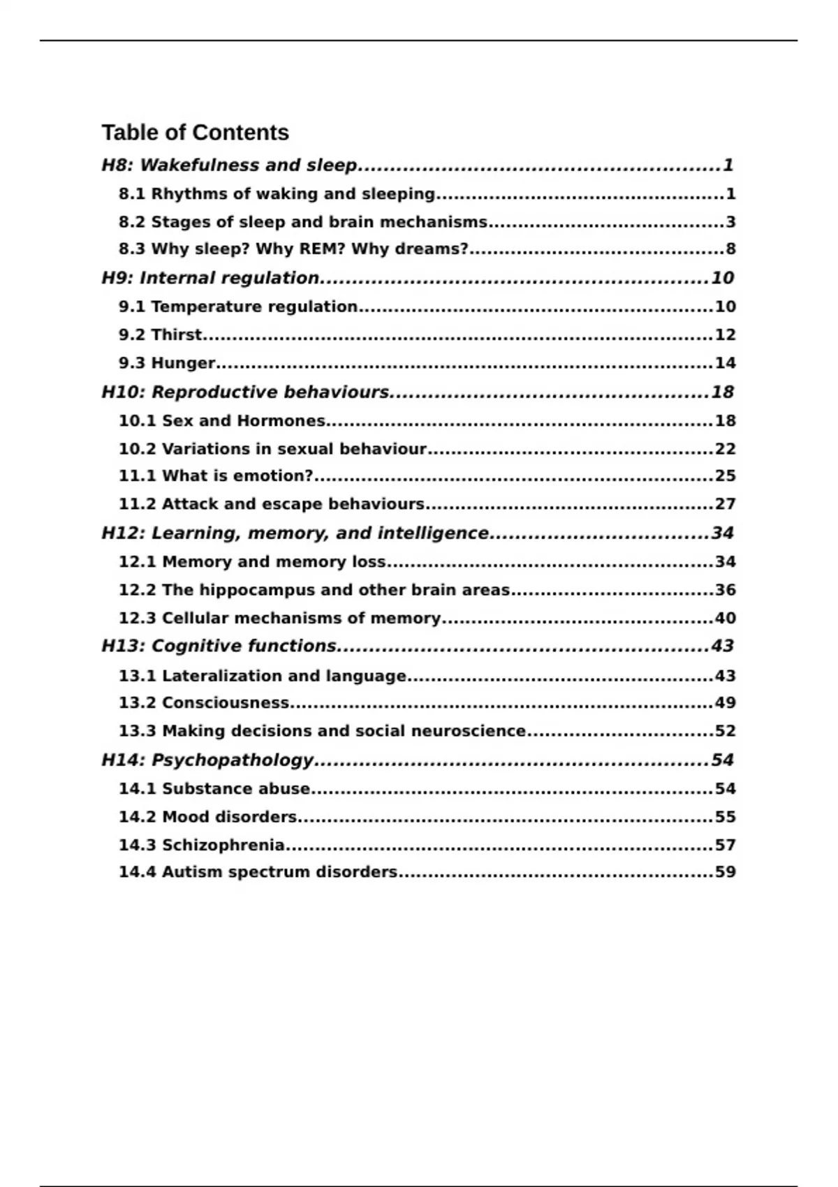 H8: Wakefulness and sleep........................................................1