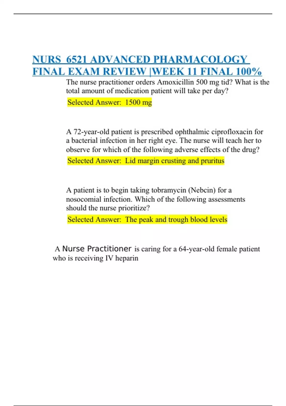 NURS 6521 ADVANCED PHARMACOLOGY FINAL EXAM REVIEW |WEEK 11 FINAL 100%