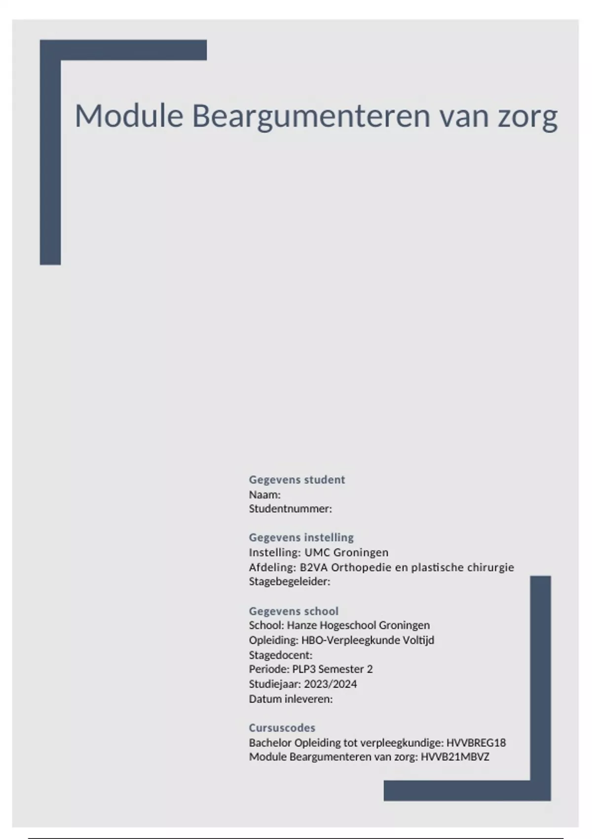 Module Beargumenteren van zorg: HVVB21MBVZ