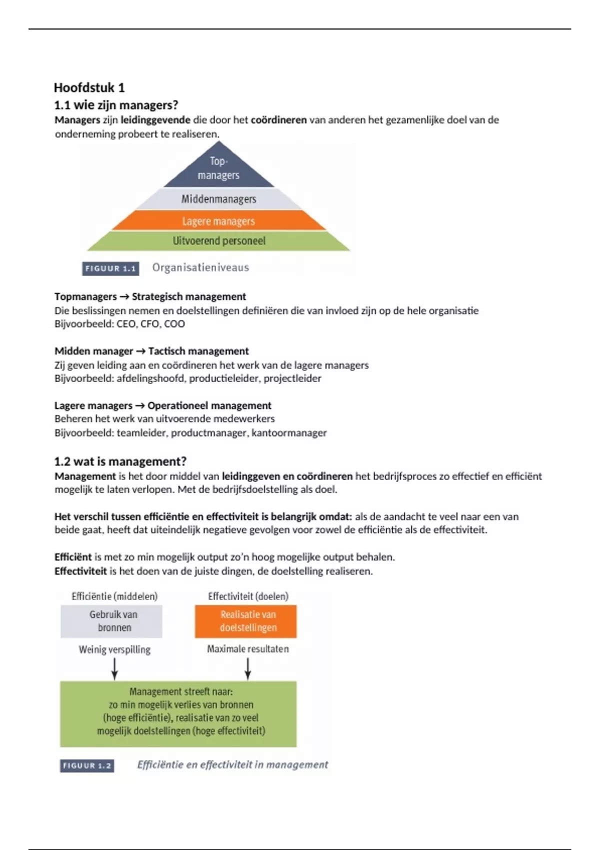 Management is het door middel van leidinggeven en coördineren het bedrijfsproces zo effectief en efficiënt