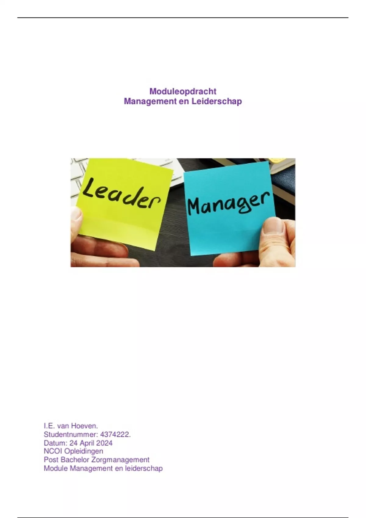 “management en leiderschap”, van het NCOI. Ik heb het ervaren als een goede match tussen de