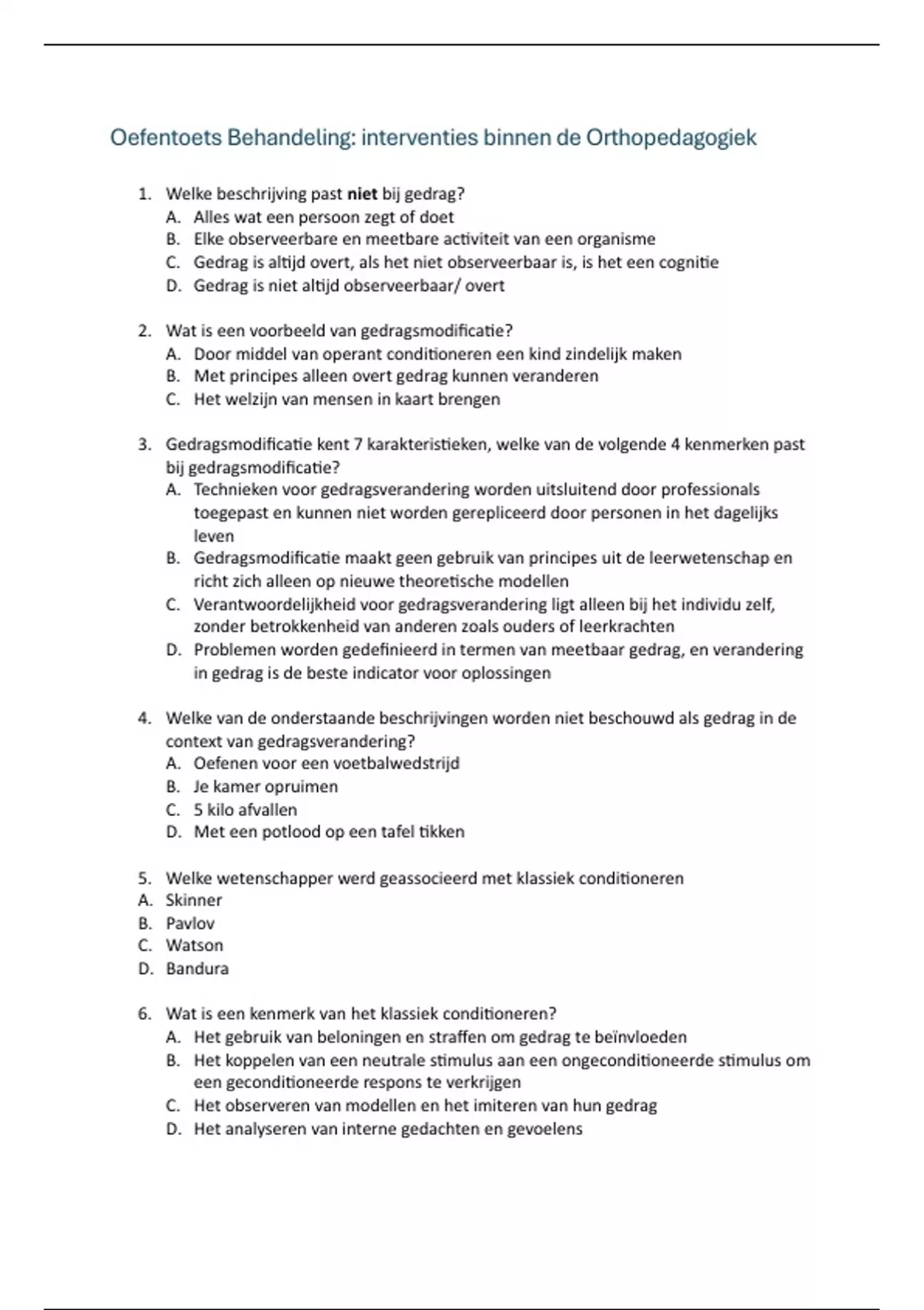 Oefentoets Behandeling: interventies binnen de Orthopedagogiek