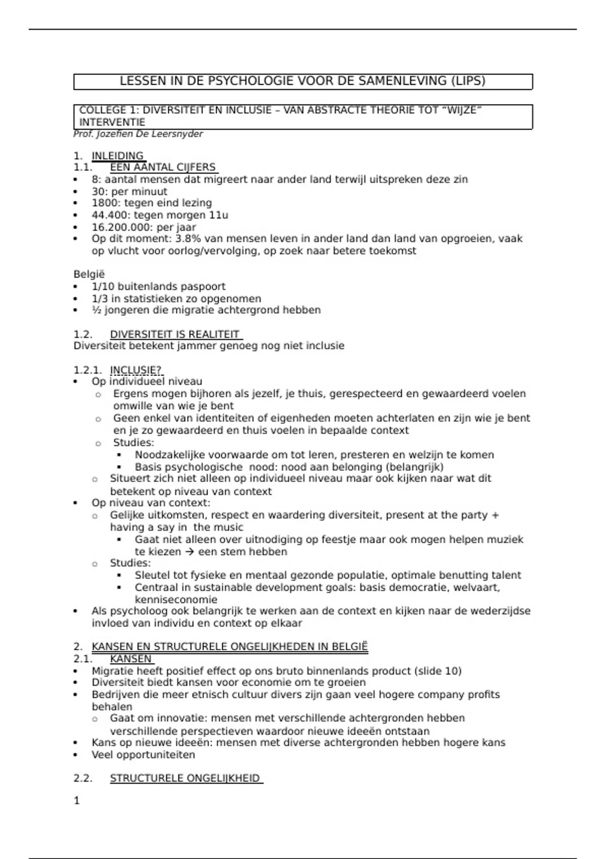 LESSEN IN DE PSYCHOLOGIE VOOR DE SAMENLEVING (LIPS)