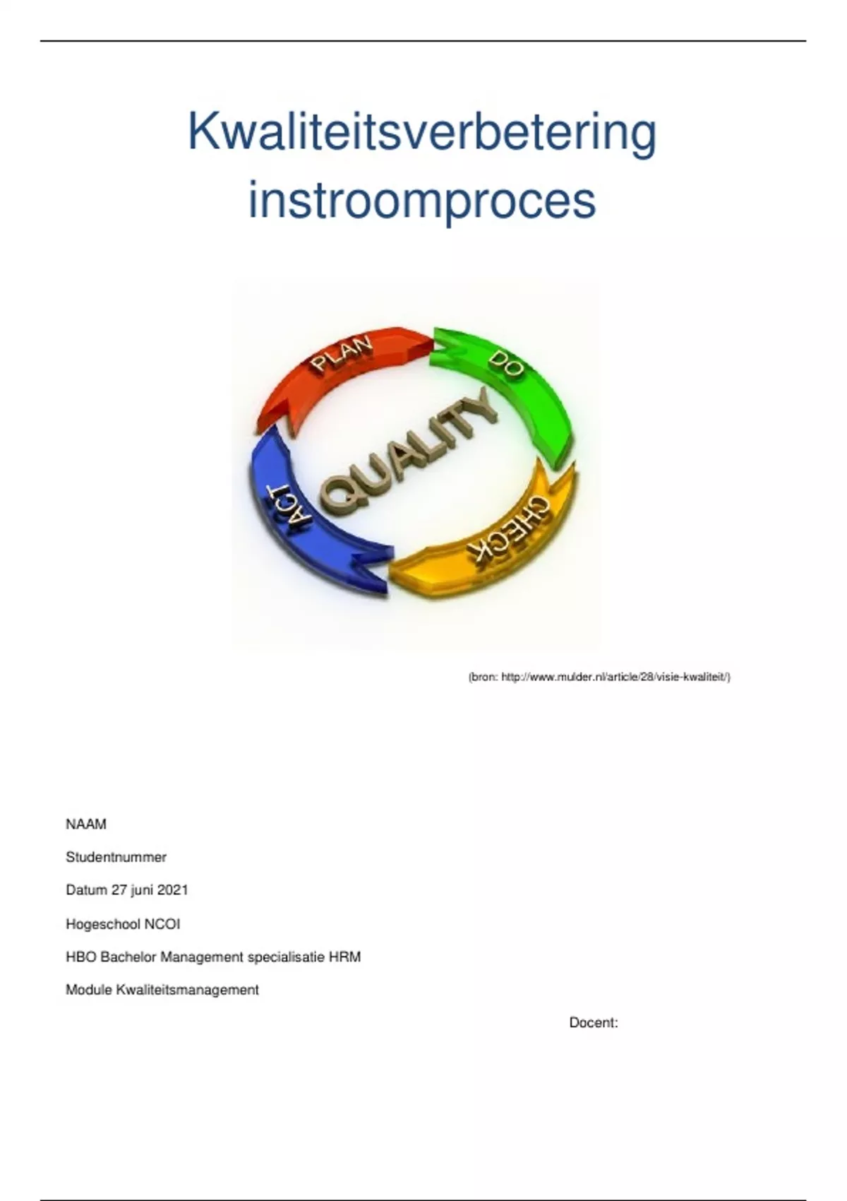 kwaliteitsmanagement. Hierbij komt alle opgedane kennis uit de module samen. Dit rapport is