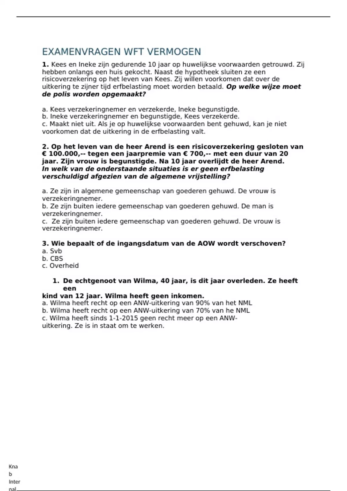1. Kees en Ineke zijn gedurende 10 jaar op huwelijkse voorwaarden getrouwd. Zij