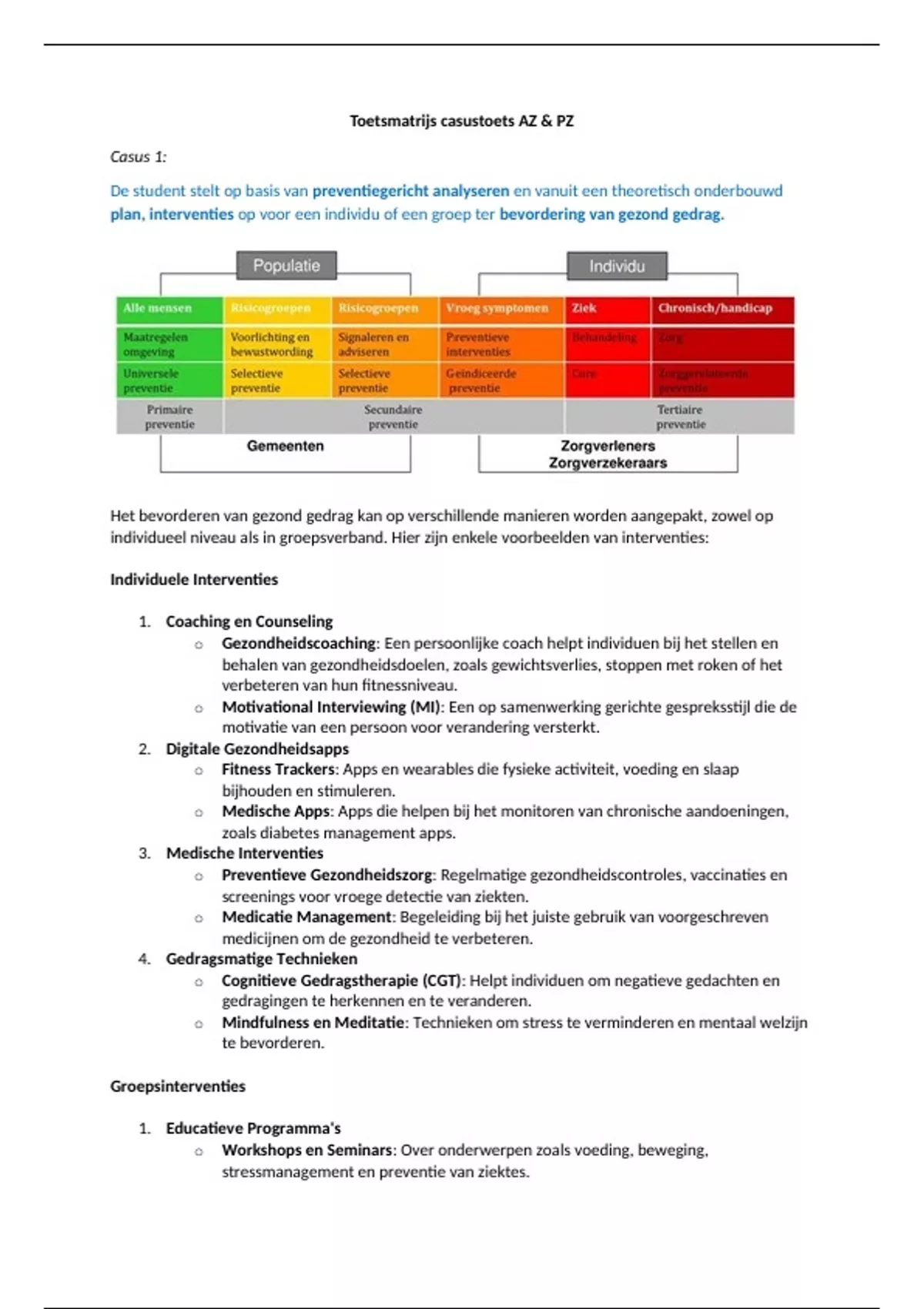 Tentamen van 57 pagina's voor het vak casustoets az/pz aan de Viaa (Toetsmatrijs Az/pz)