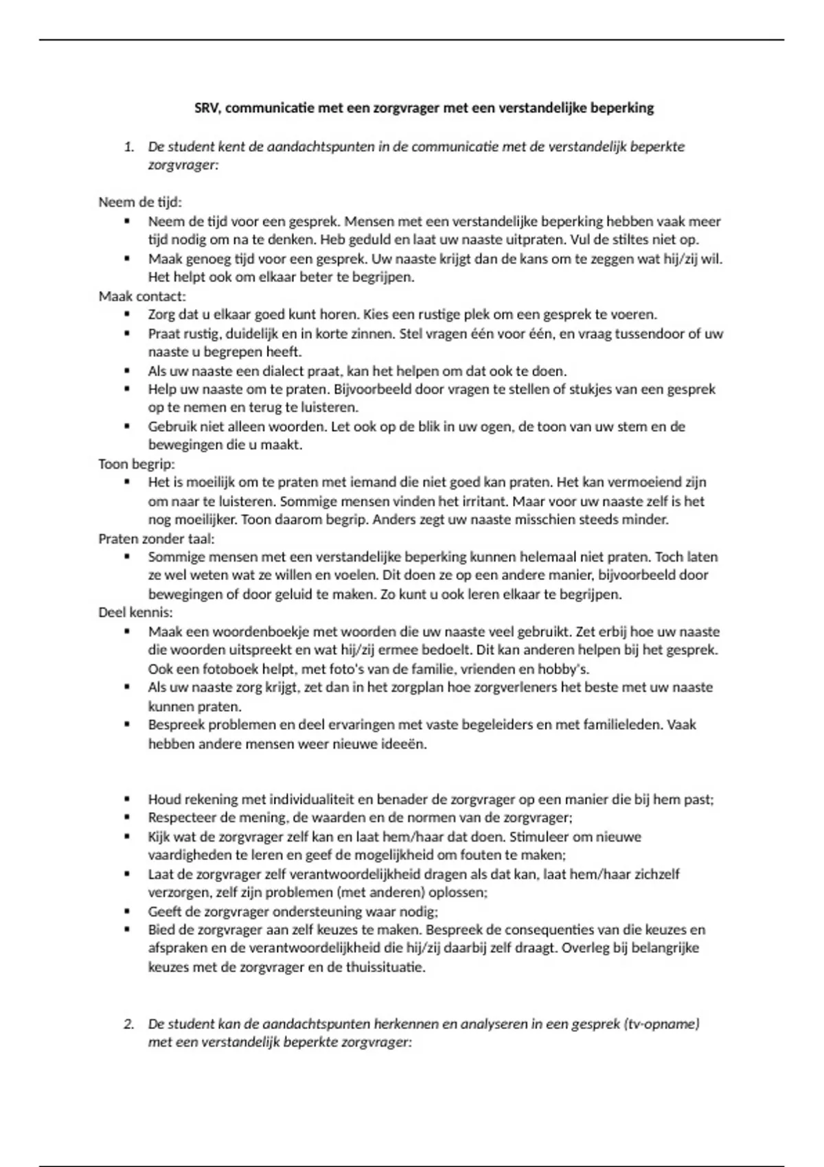 1. De student kent de aandachtspunten in de communicatie met de verstandelijk beperkte