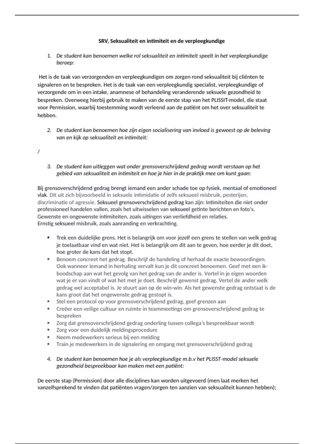 4. De student kan benoemen hoe je als verpleegkundige m.b.v het PLISST-model seksuele