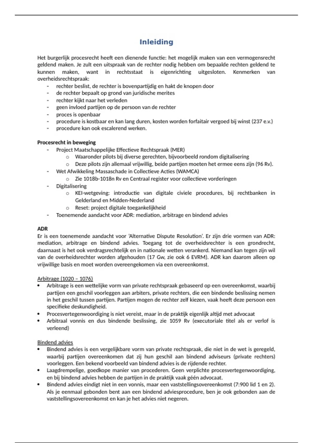Volledige samenvatting burgerlijk procesrecht (eindcijfer: 9,5)