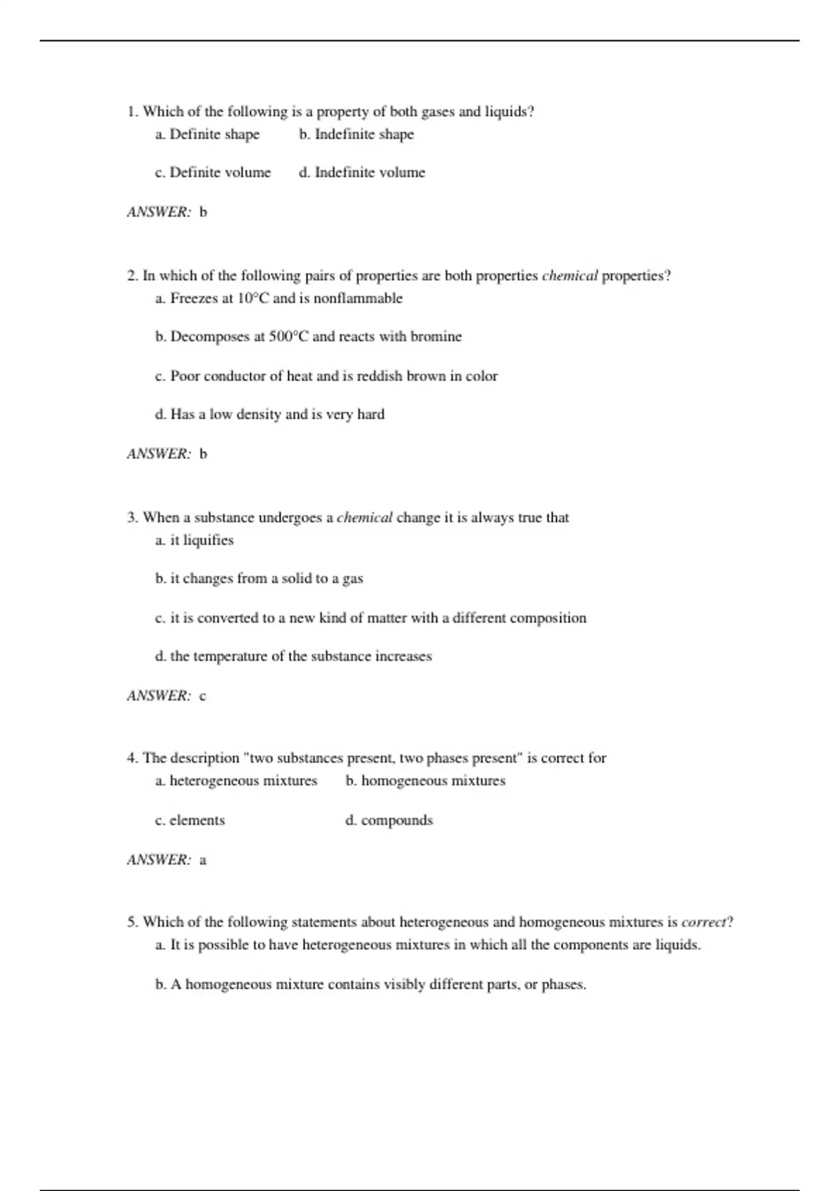 c. Definite volume d. Indefinite volume