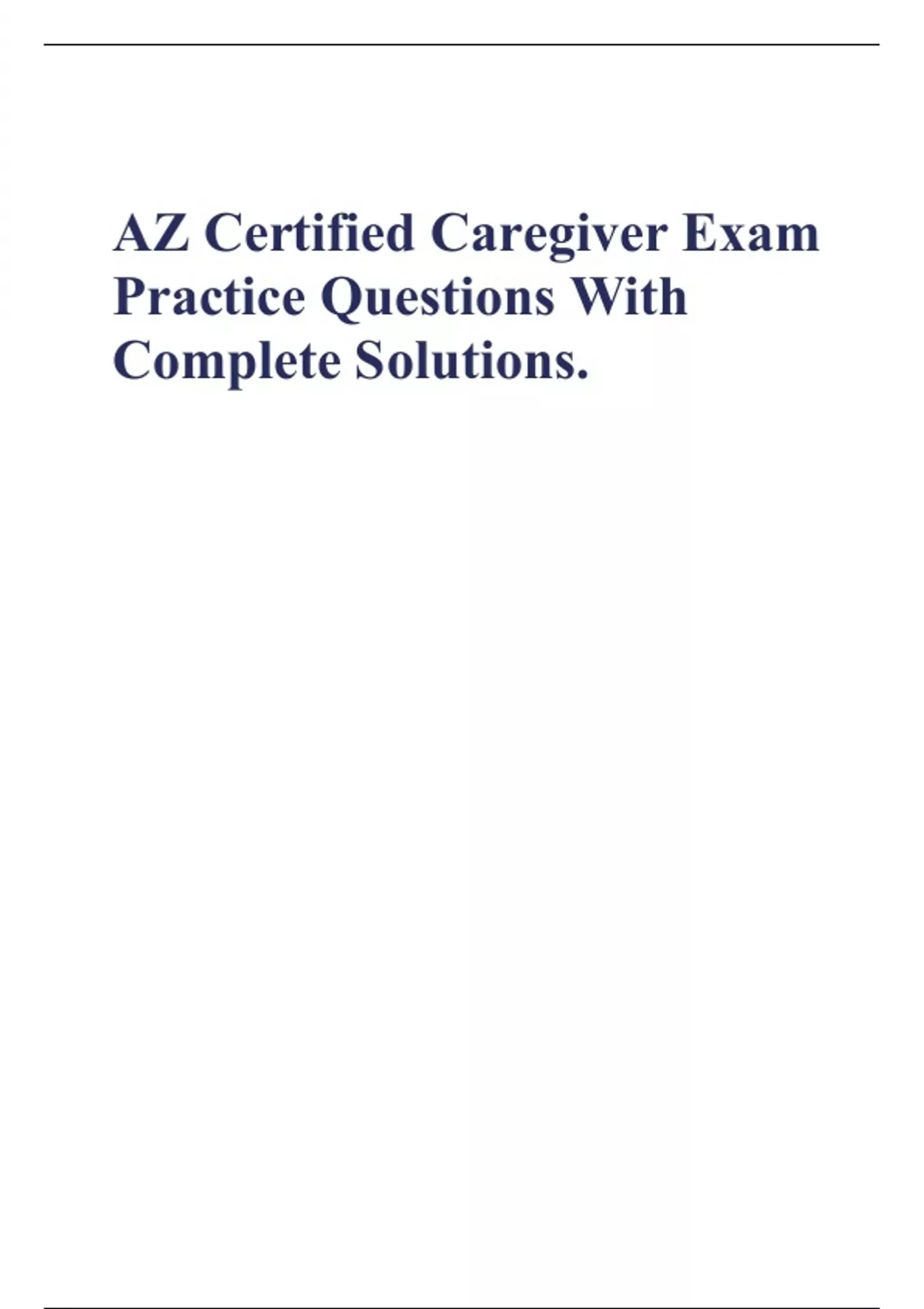AZ Certified Caregiver Exam Practice Questions With Complete Solutions.