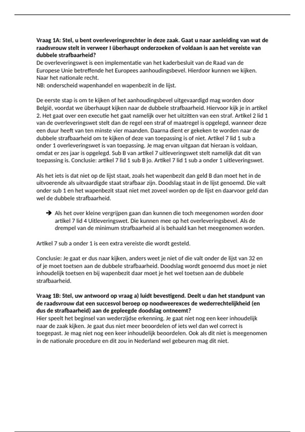 Vraag 1A: Stel, u bent overleveringsrechter in deze zaak. Gaat u naar aanleiding van wat de