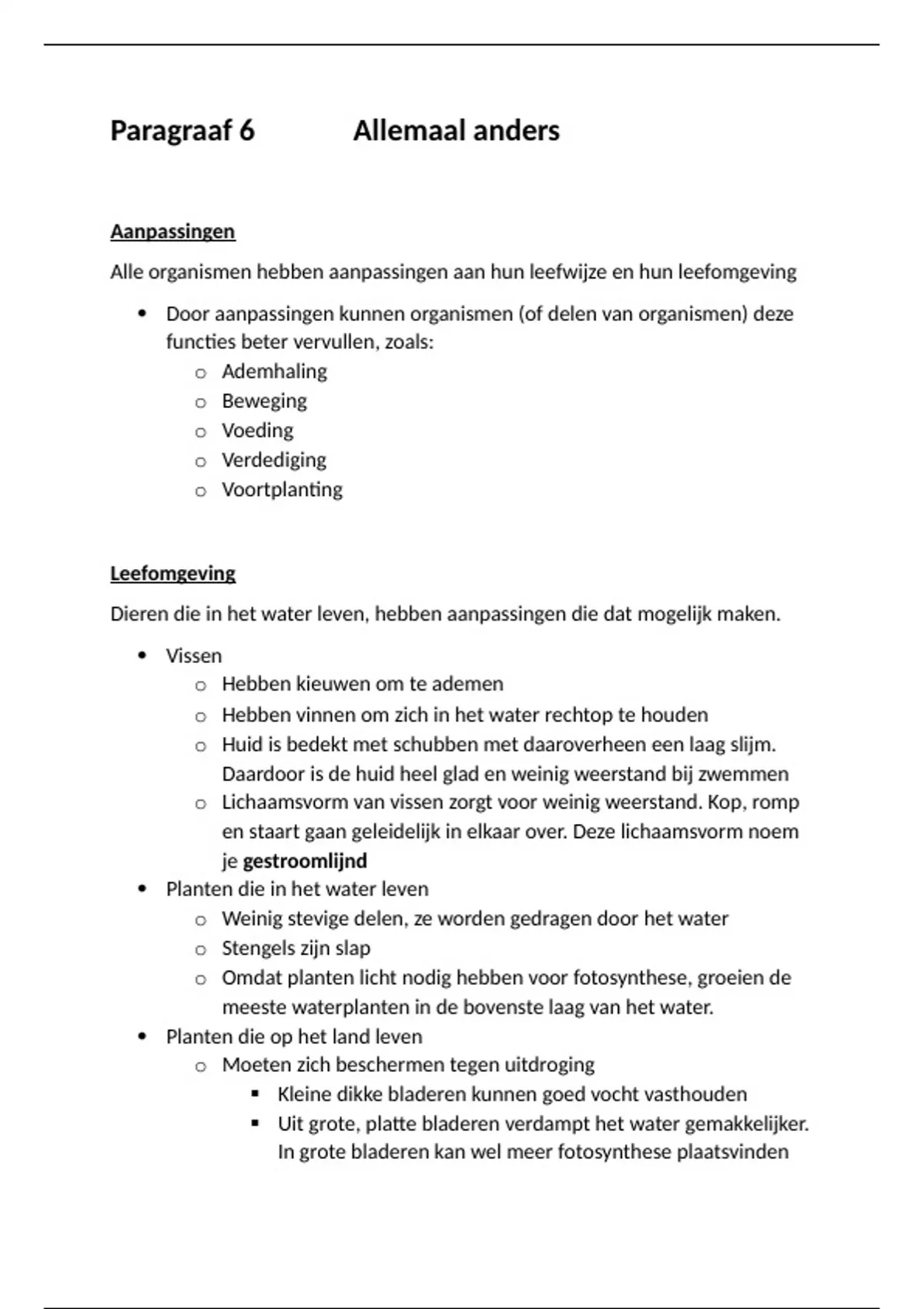 Alle organismen hebben aanpassingen aan hun leefwijze en hun leefomgeving
