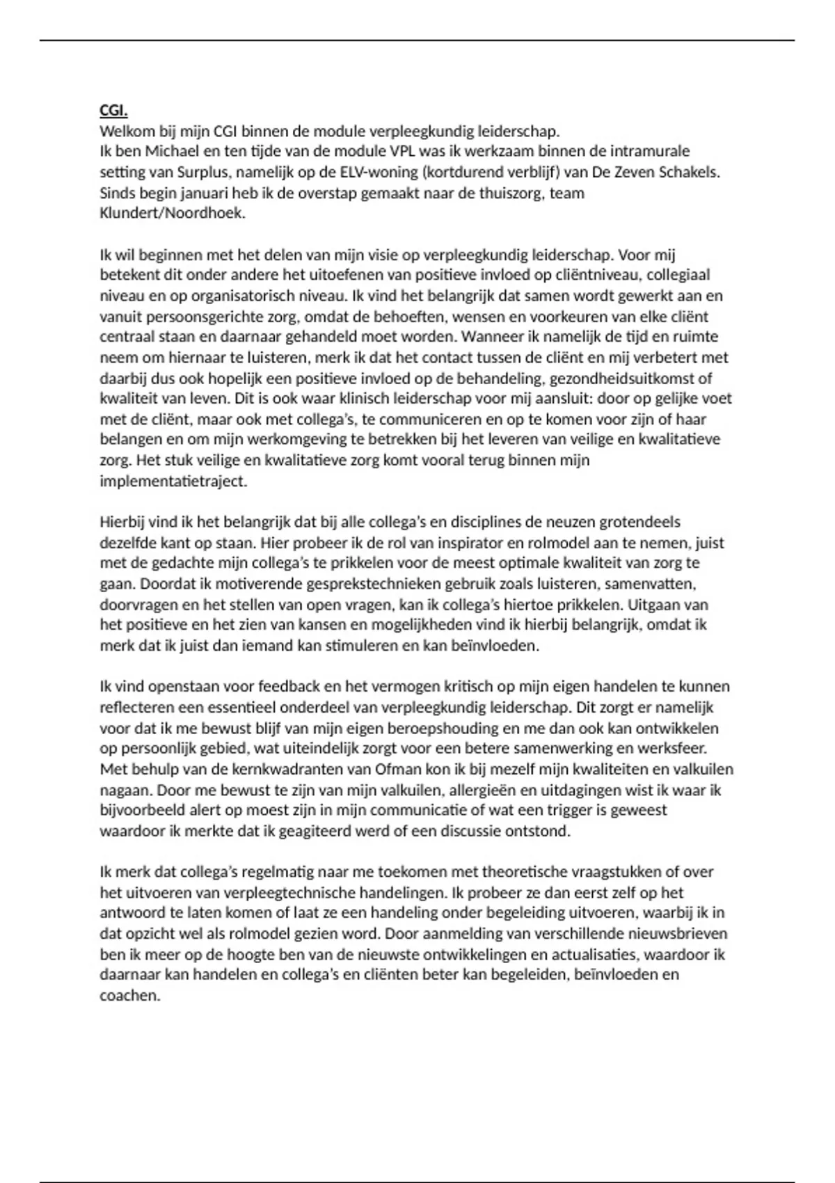 Welkom bij mijn CGI binnen de module verpleegkundig leiderschap.