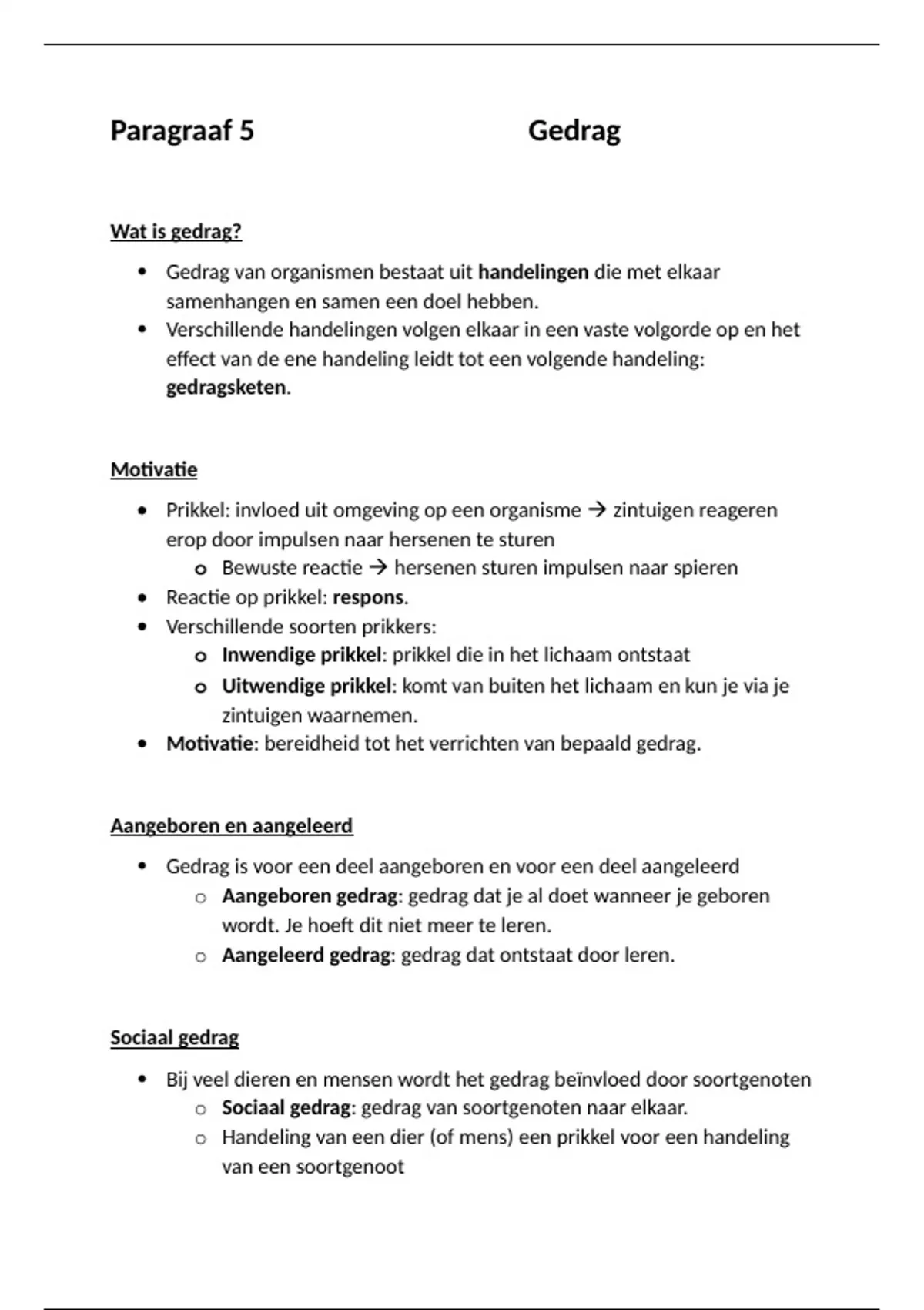 biologie - samenvatting boek: biologie voor jou - havo/vwo - leerjaar 1 - boek 1b hoofdstuk 5 paragraaf 5: gedrag