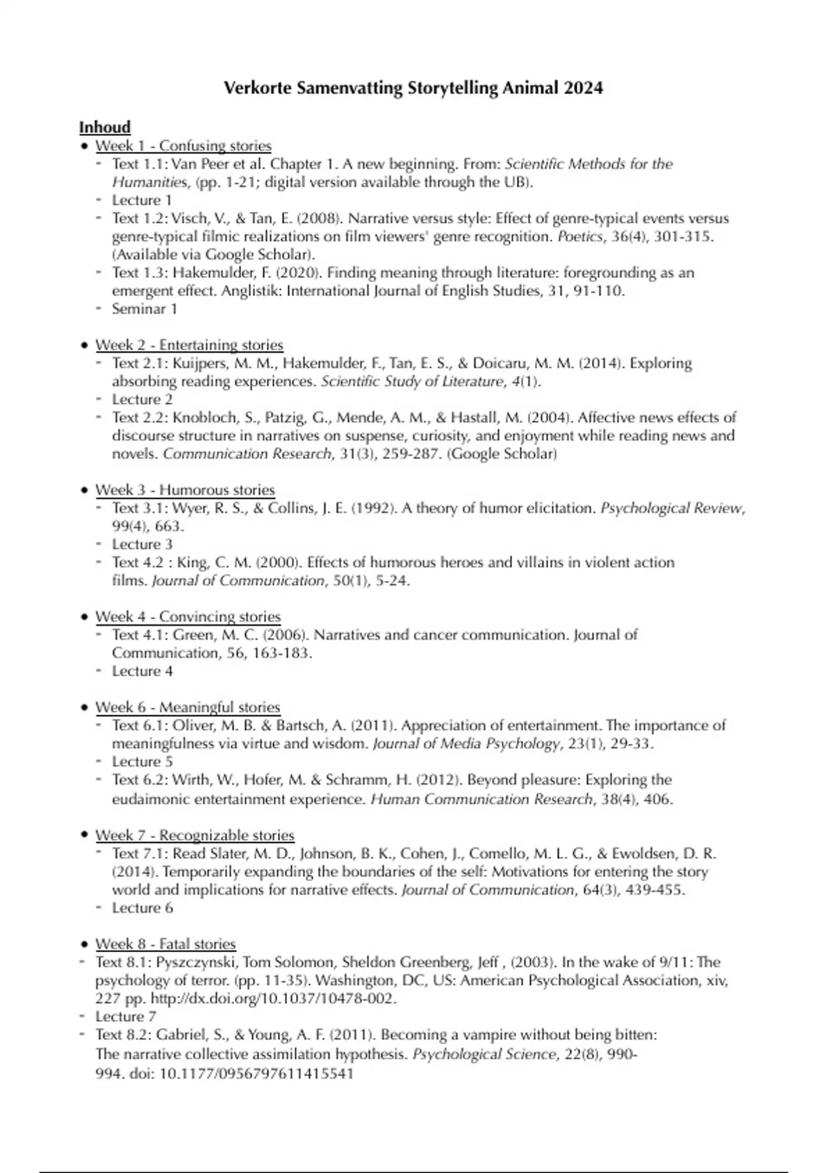 - Text 1.2: Visch, V., & Tan, E. (2008). Narrative versus style: Effect of genre-typical events versus