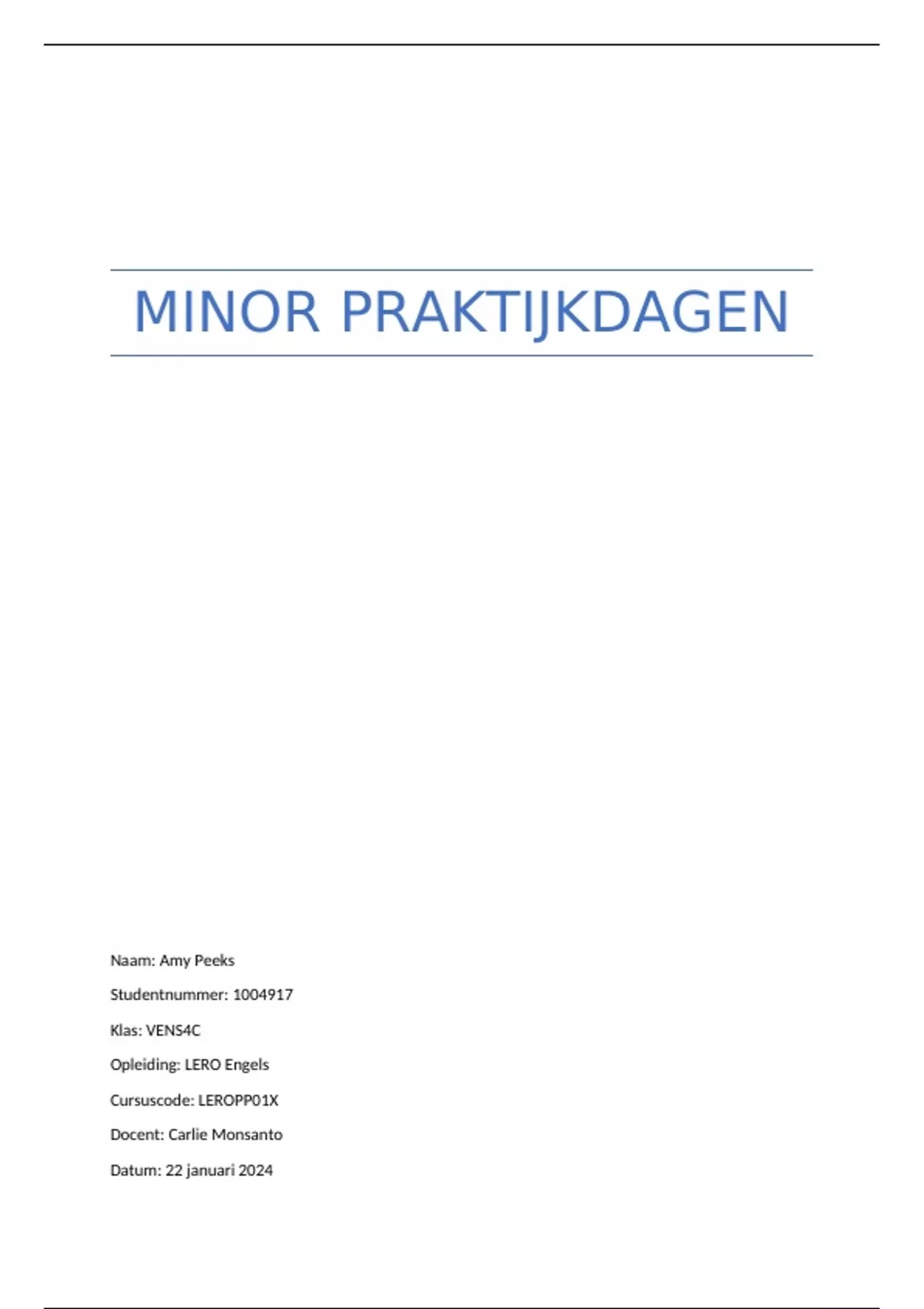 MINOR PRAKTIJKDAGEN