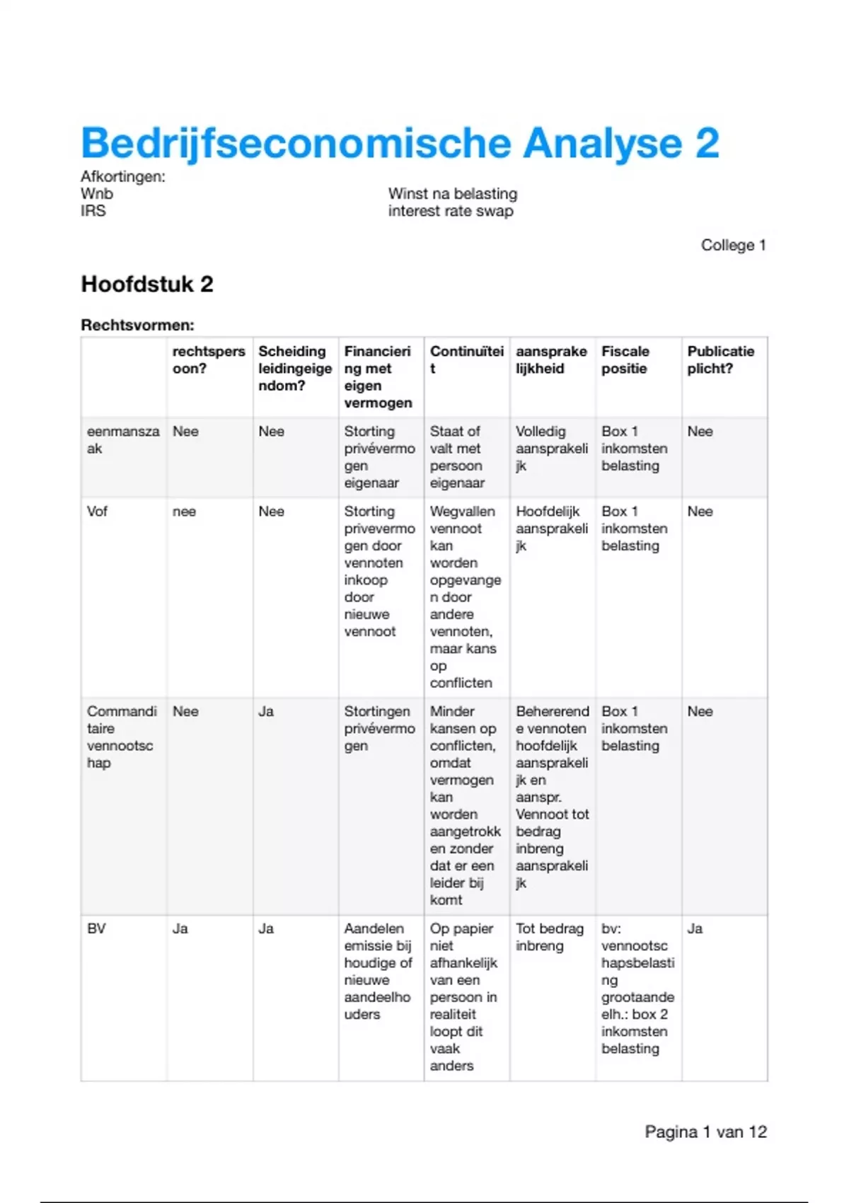 Bedrijfseconomische Analyse 2