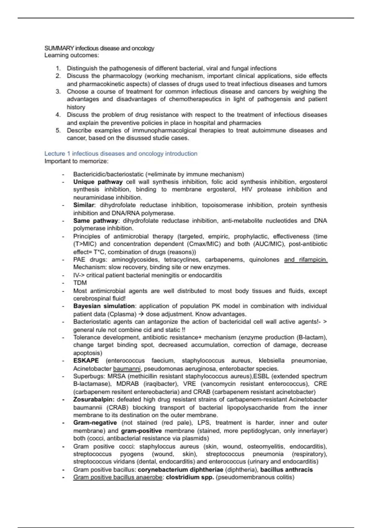 SUMMARY infectious disease and oncology