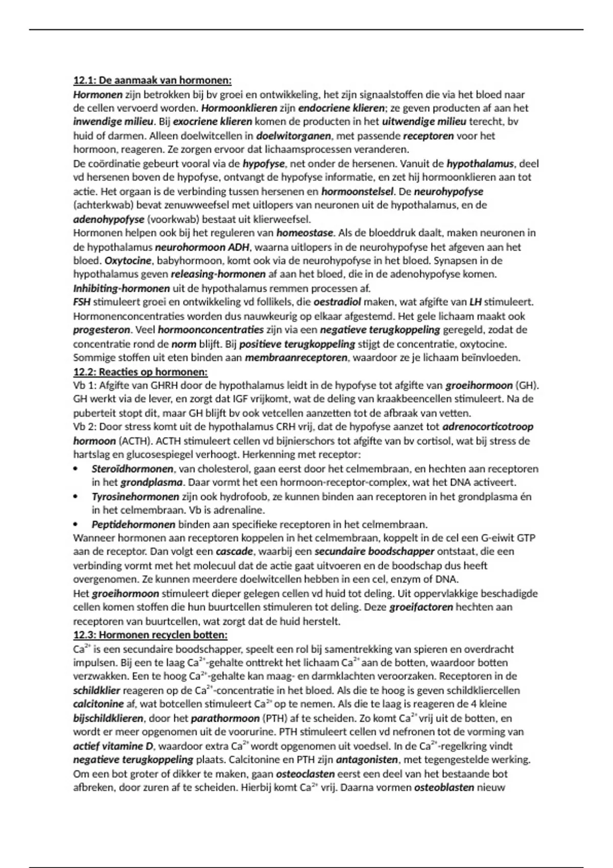 Een samenvatting van het vak biologie, methode Nectar voor 5 vwo. Het behandeld de hoofdstukken 12, 13 en 14, over hormonen, het zenuwstelsel en waarnemen.
