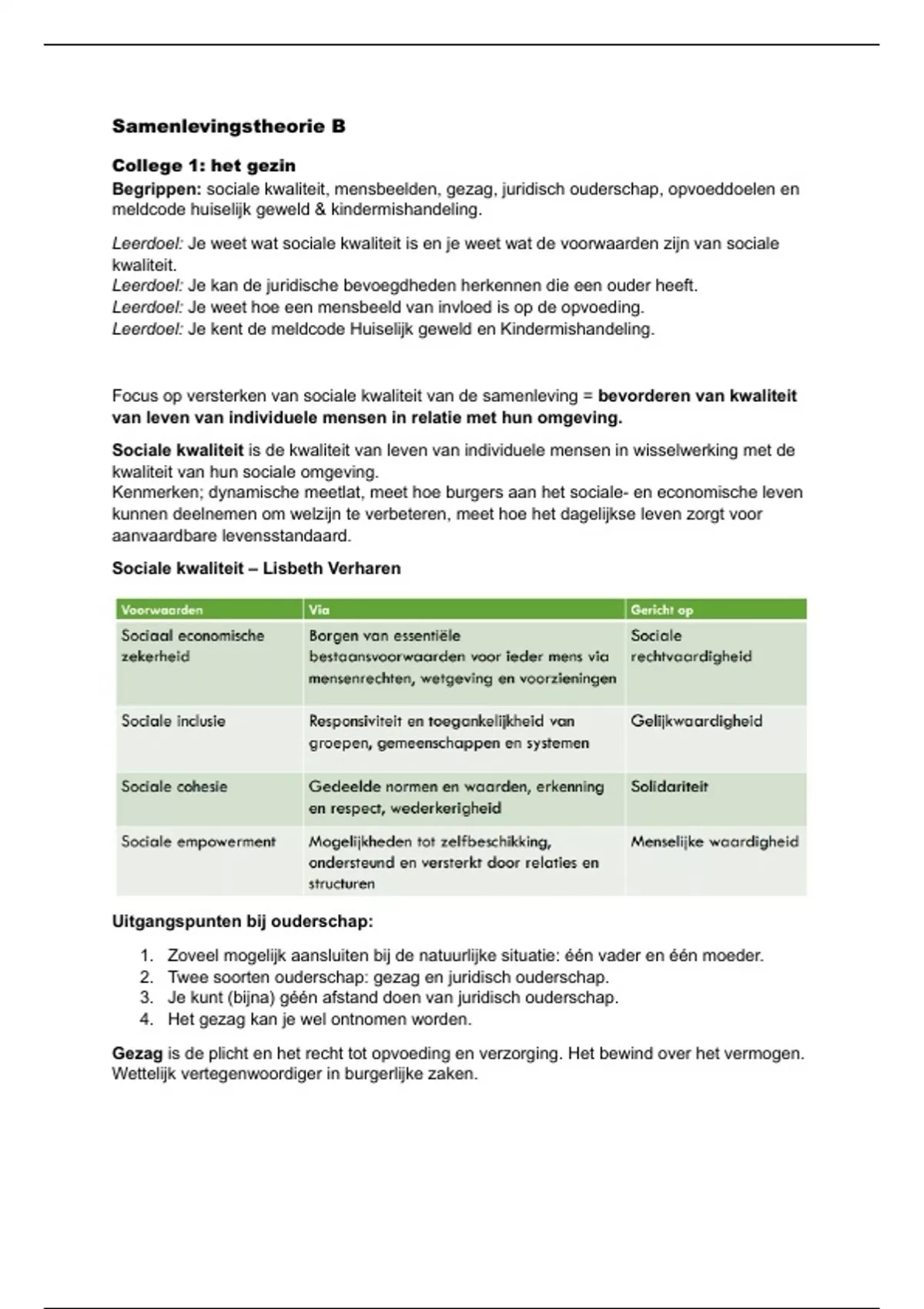 Begrippen: sociale kwaliteit, mensbeelden, gezag, juridisch ouderschap, opvoeddoelen en