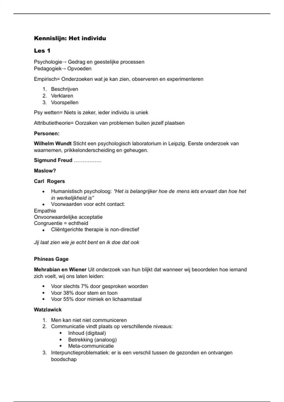 Kennislijn Individu, samenvatting van de lessen over menstheorie A.
