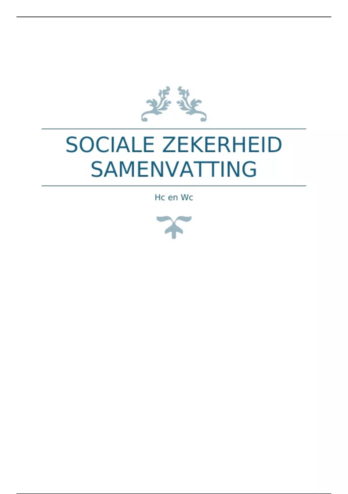 Samenvatting Sociale Zekerheid SJD. Samenvatting bestaat uit hoor-en werkcolleges Vak behaald