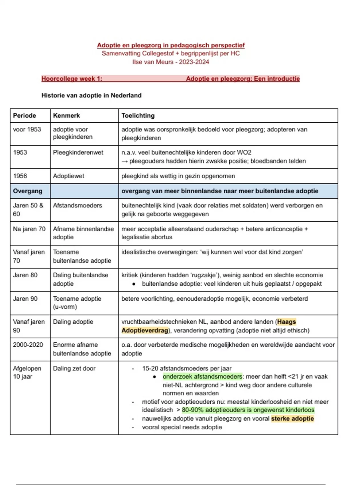 Hoorcollege week 1: Adoptie en pleegzorg: Een introductie