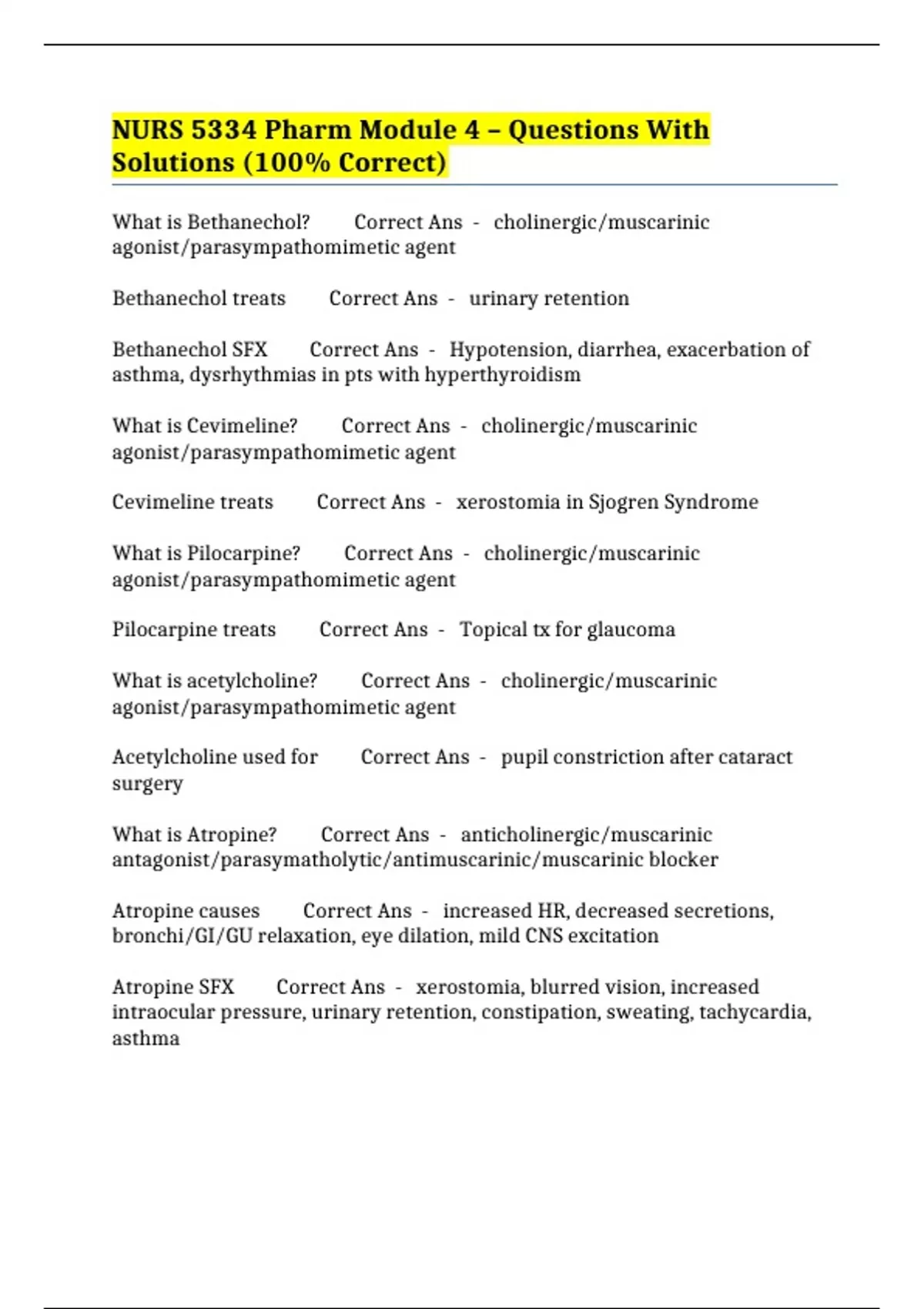 NURS 5334 Pharm Module 4 – Questions With Solutions (100% Correct)