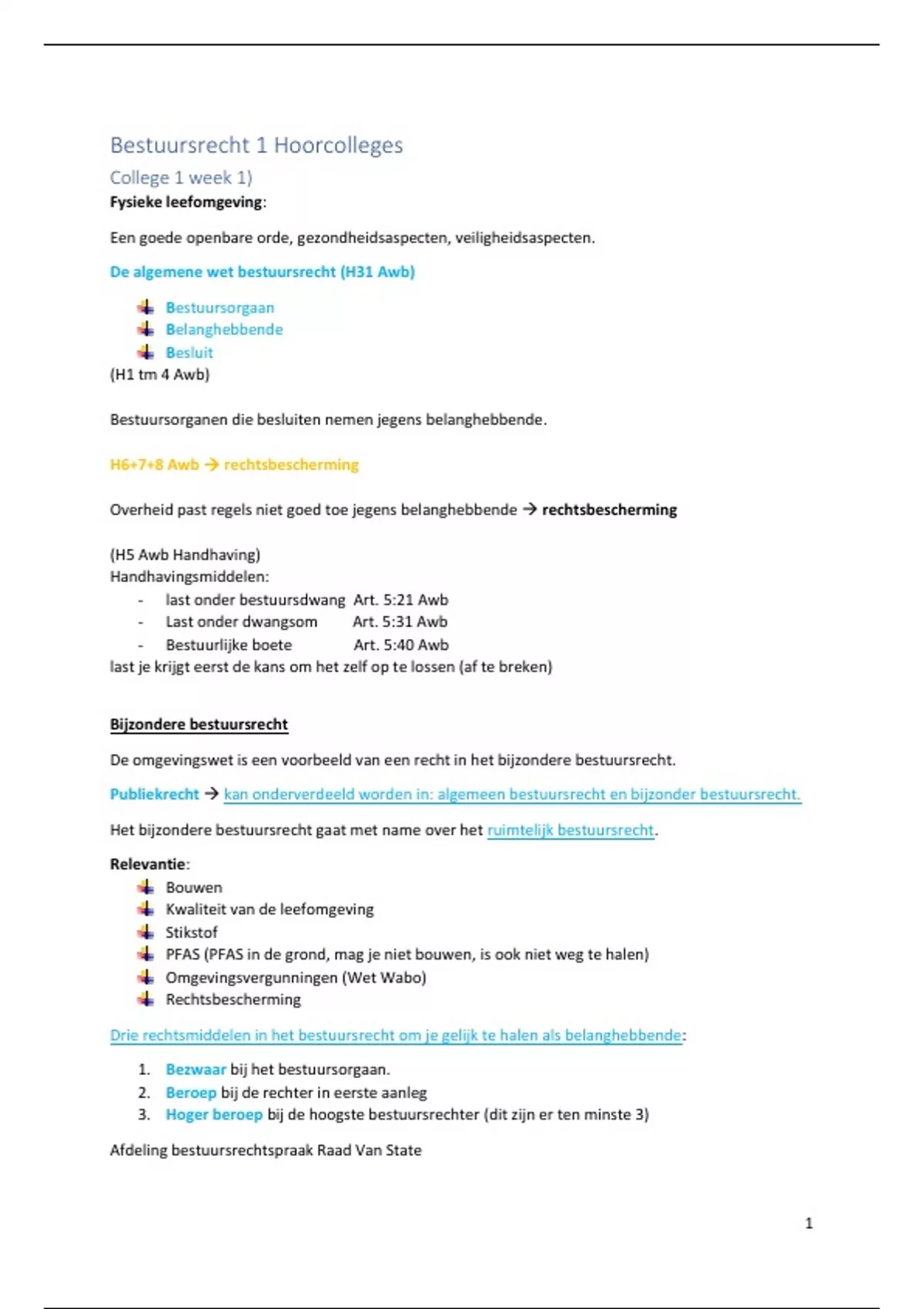 Het bijzondere bestuursrecht gaat met name over het ruimtelijk bestuursrecht.