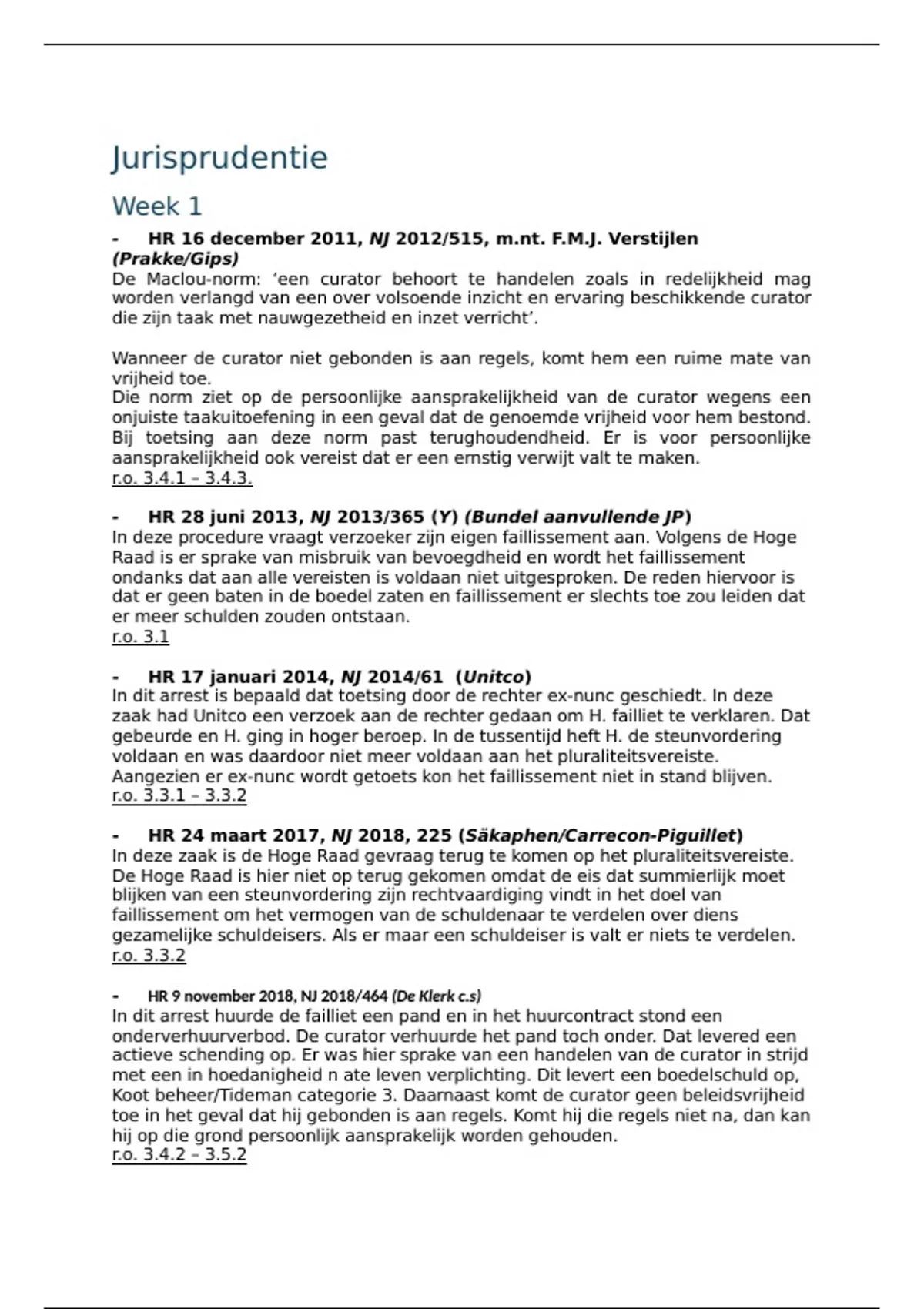 Uitwerking van alle voorgeschreven arresten van het vak insolventierecht in het jaar 2023/2024.