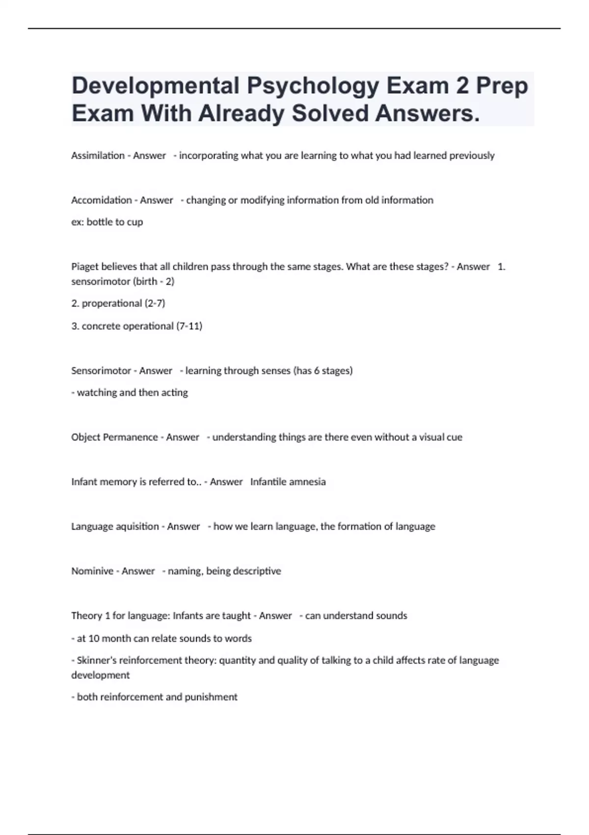 Developmental Psychology Exam 2 Prep Exam With Already Solved Answers.