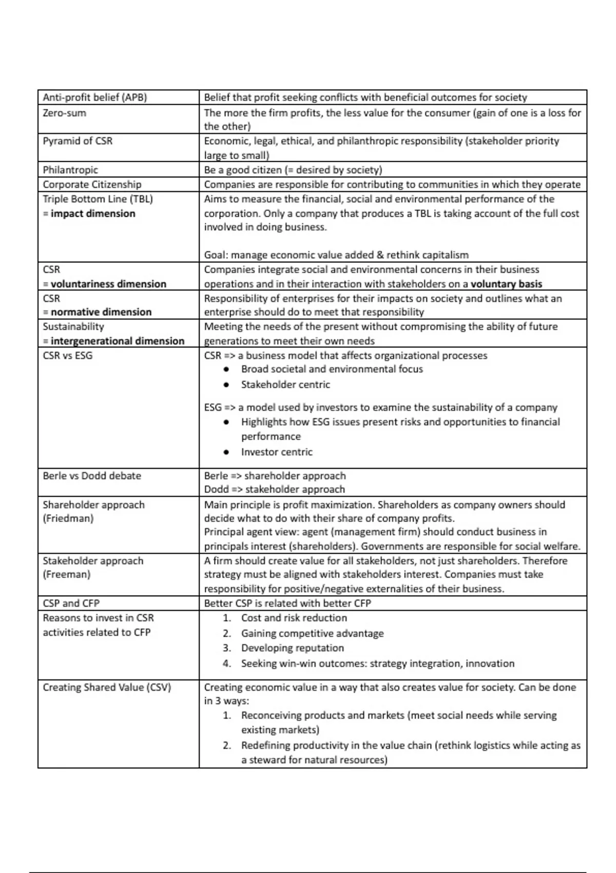 Summary of the course corporate sustainability.