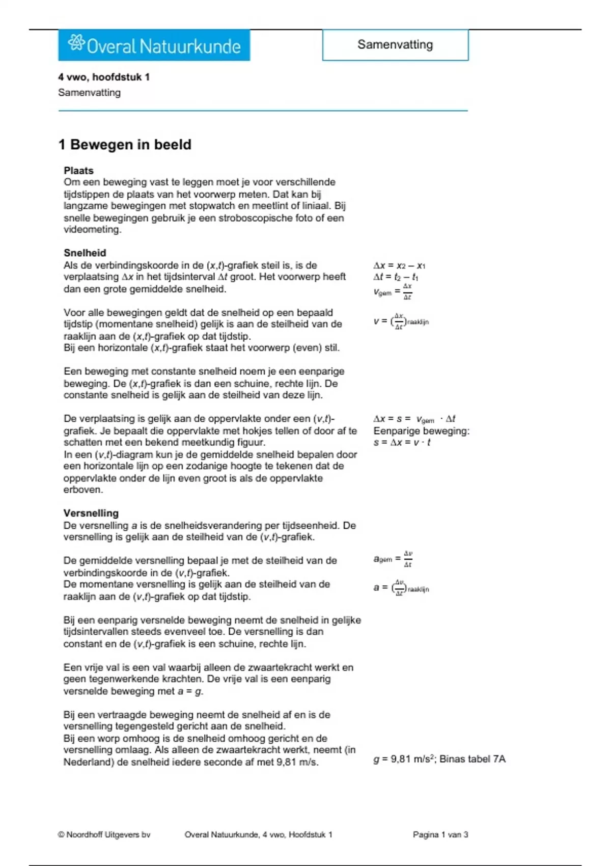 © Noordhoff Uitgevers bv Overal Natuurkunde, 4 vwo, Hoofdstuk 1 Pagina 1 van 3