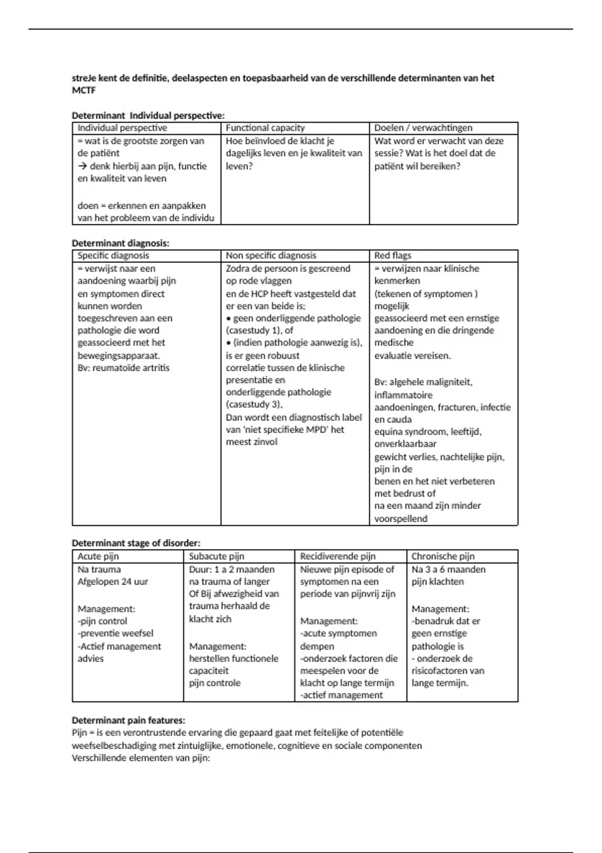 Determinant pain features: