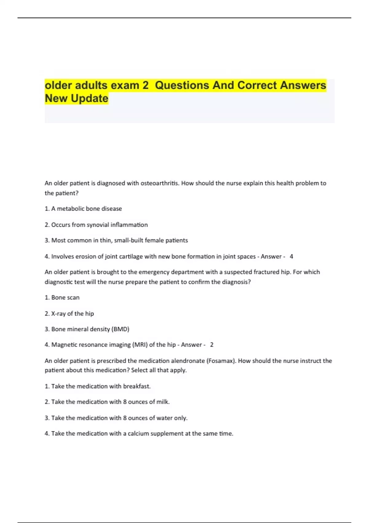 older adults exam 2 Questions And Correct Answers New Update