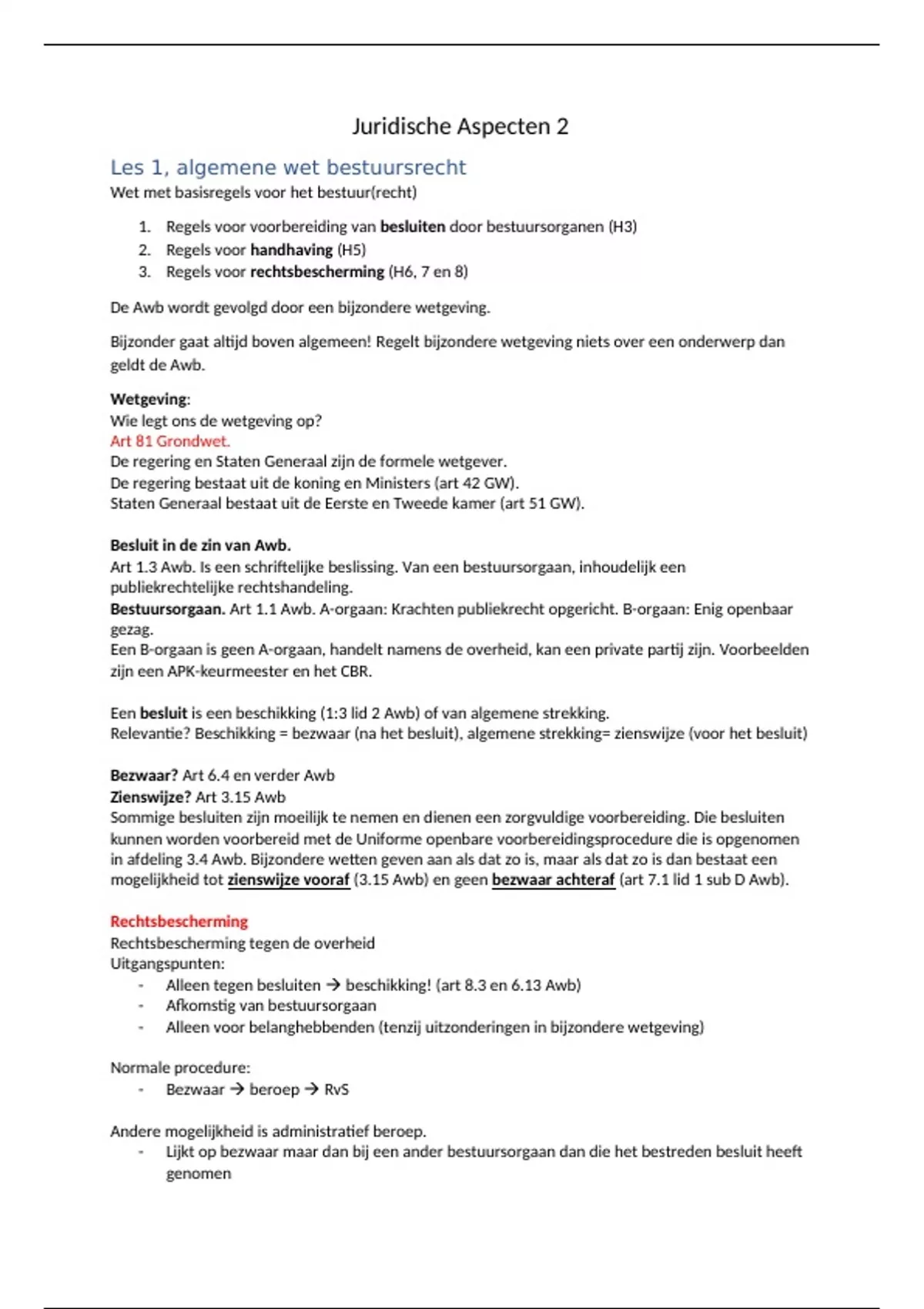 Samenvatting - Juridische Aspecten 2 (T.54615)