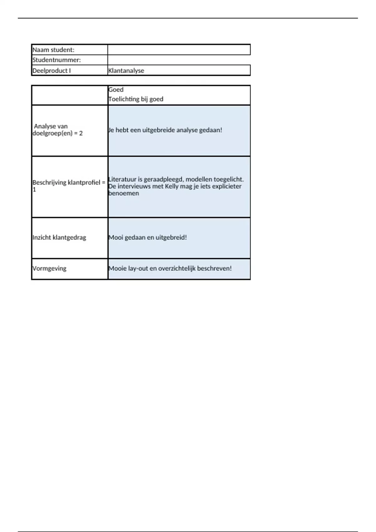 , Voldoende Feedback bij voldoende beoordeling