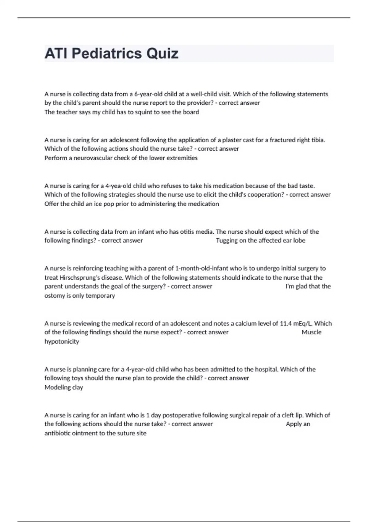 ATI Pediatrics Quiz Practice Questions Guide Distinctions Guaranteed.