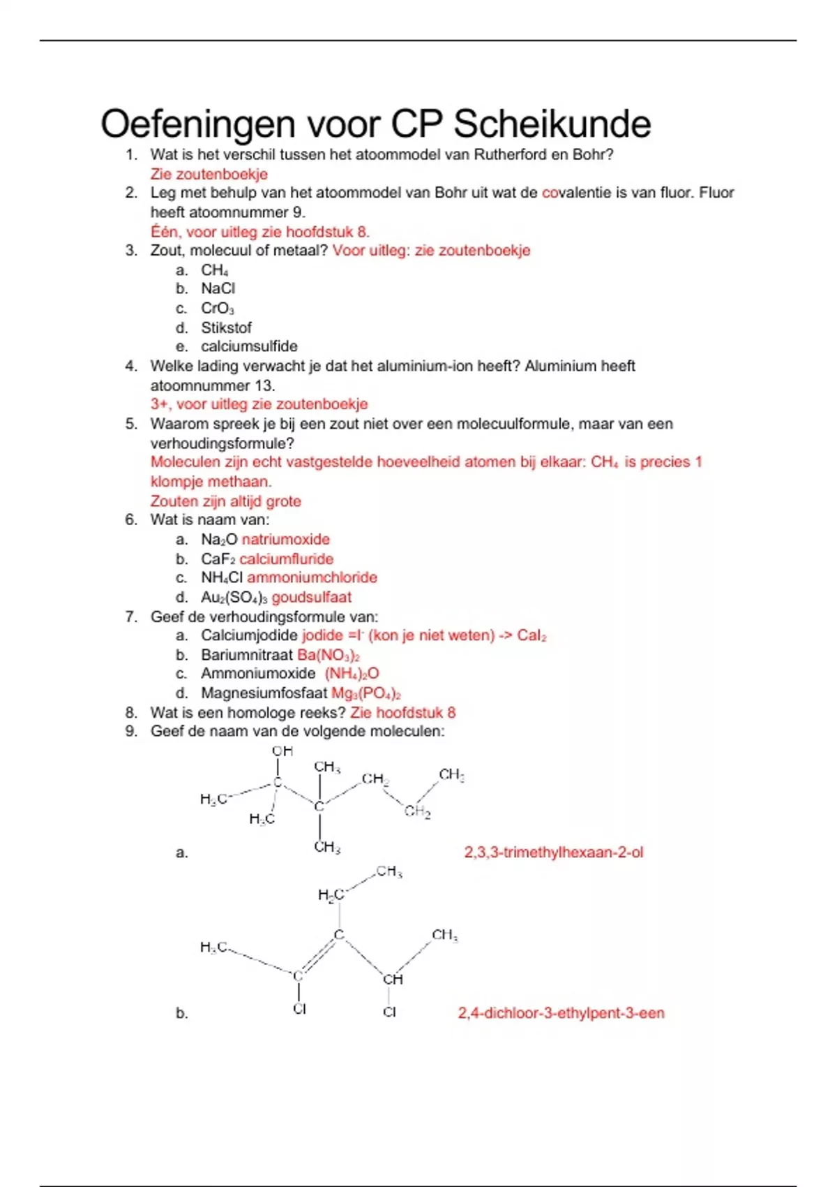 9. Geef de naam van de volgende moleculen: