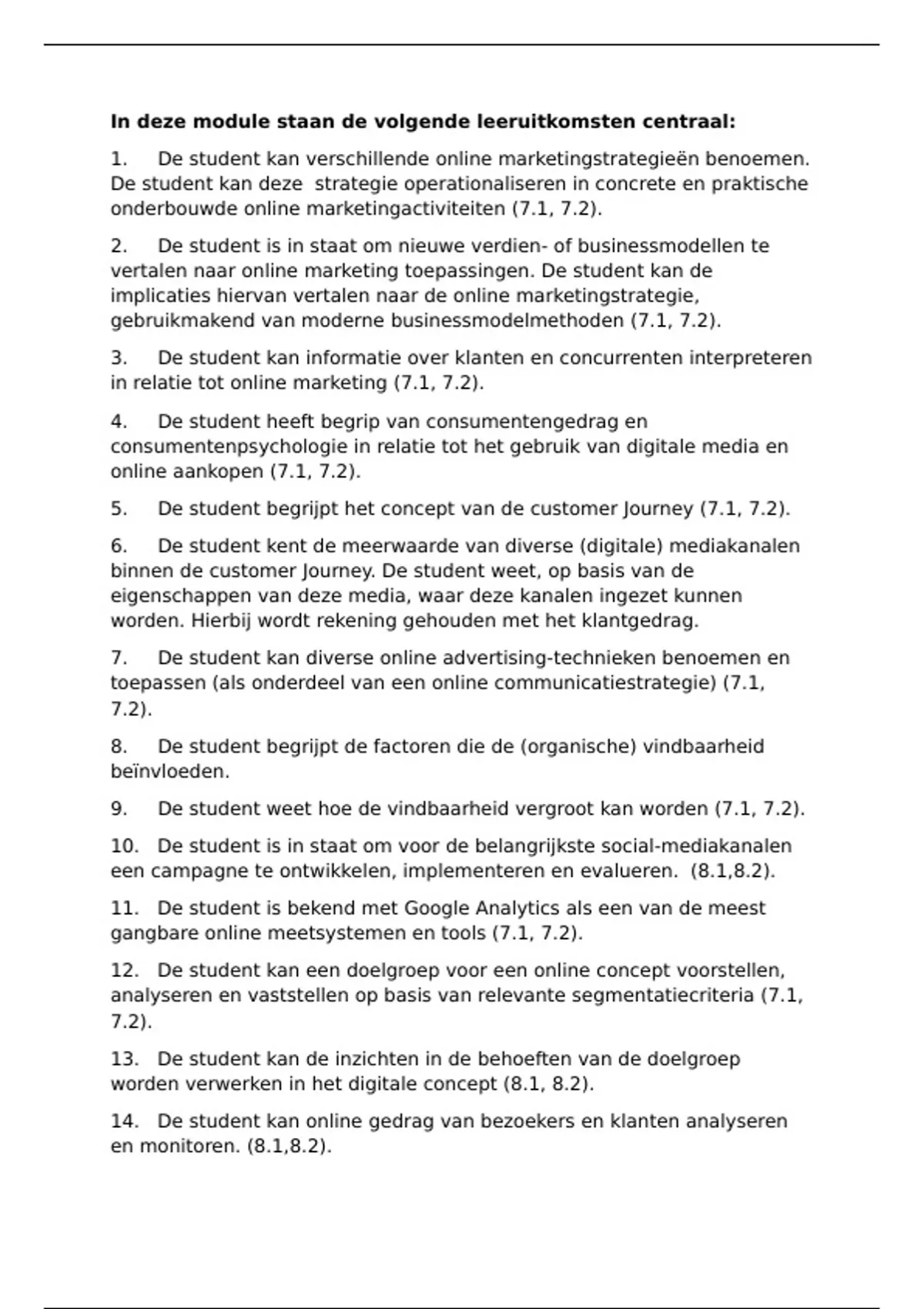 onderbouwde online marketingactiviteiten (7.1, 7.2).