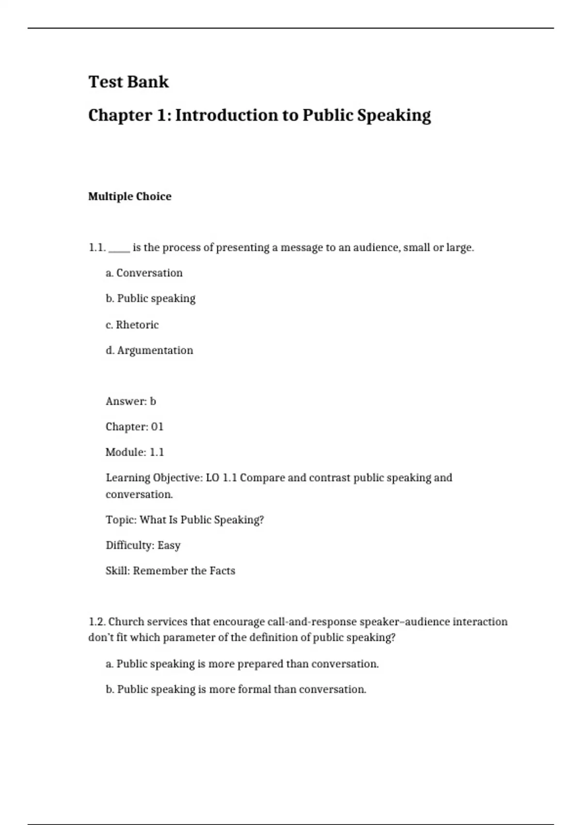 , Learning Objective: LO 1.1 Compare and contrast public speaking and