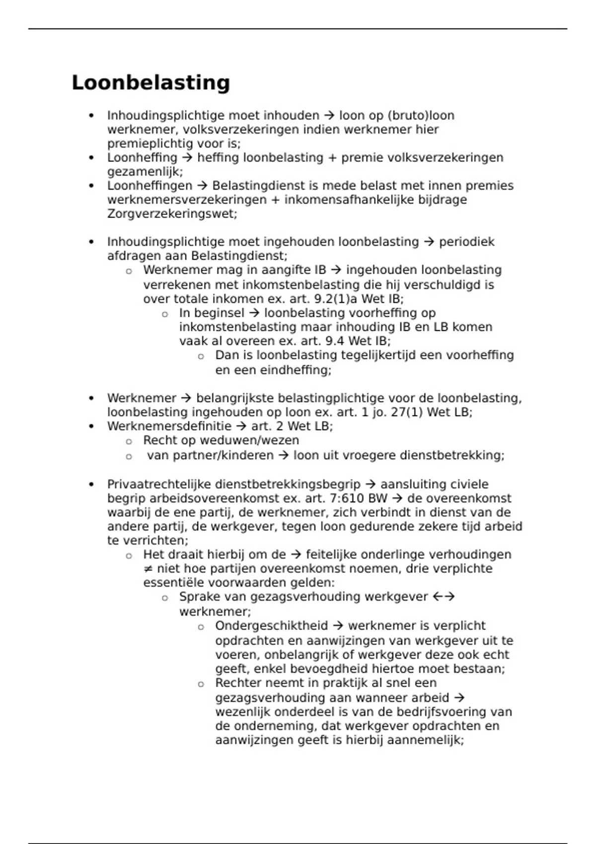 Hierbij een samenvatting van hoofdstuk 2 van het Belastingrecht voor Bachelors en Masters boek. Ik heb hier en daar ook enkele lesaantekeningen toegevoegd. Deze stof is nodig om te beheersen voor het tentamen loonbelasting. Ik heb de tekst op een beknopte, maar heldere en volledige wijze samengevat. Het leest vlot door en je weet welke wetsartikelen en schakelbepalingen je aan moet houden. Oefen goed met de opgaven na het leren uit deze samenvatting.